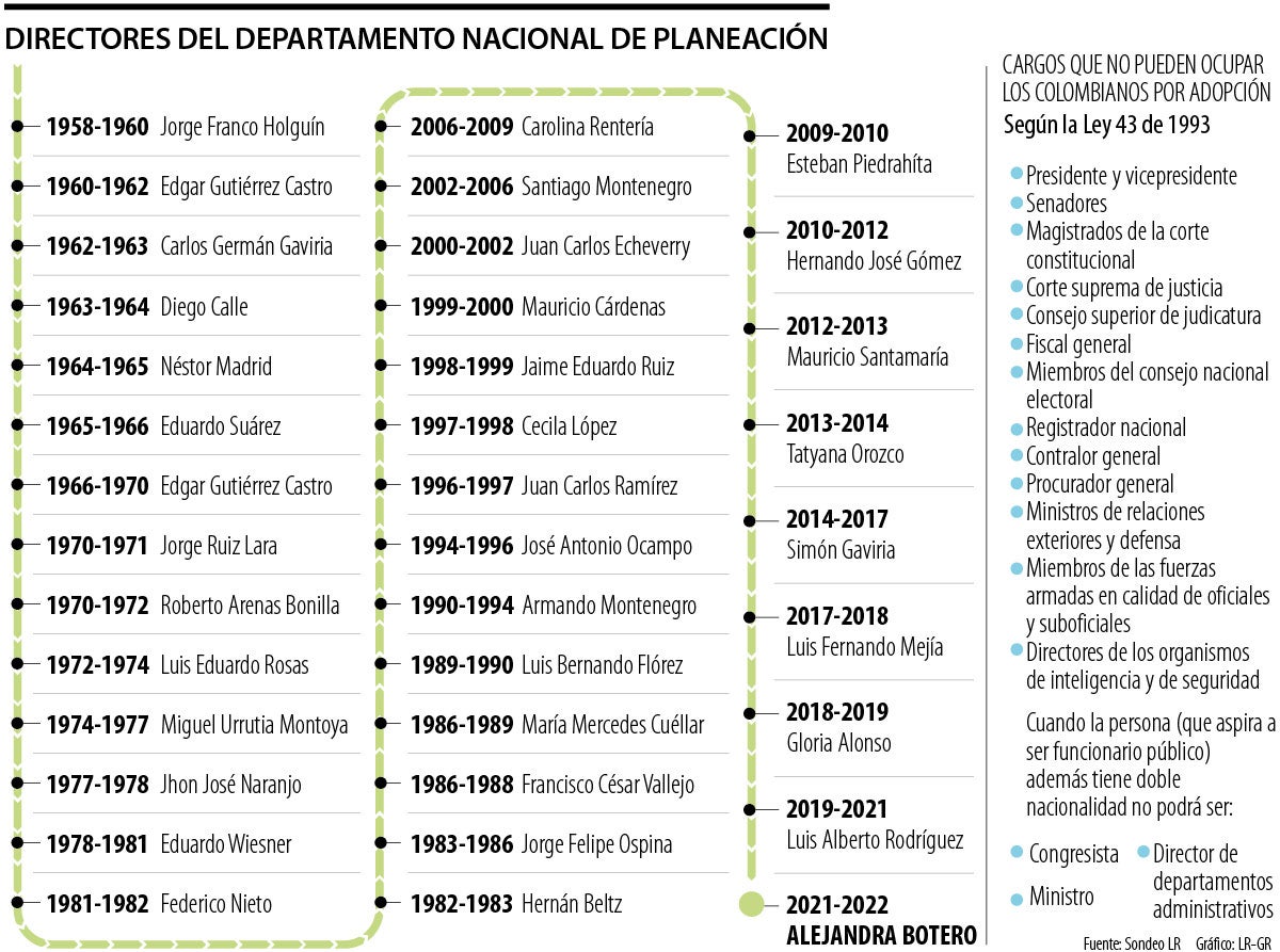 En el artículo 29, sobre las limitaciones a los colombianos por adopción con doble nacionalidad, se establecen restricciones adicionales. Además a los ya mencionados, se incluyen congresistas, ministros y directores de departamentos administrativos. Ese último escenario es el que tendría en problemas la posesión de Ferrari en la dirección del DNP, que por sus características puede definirse como un departamento administrativo.
