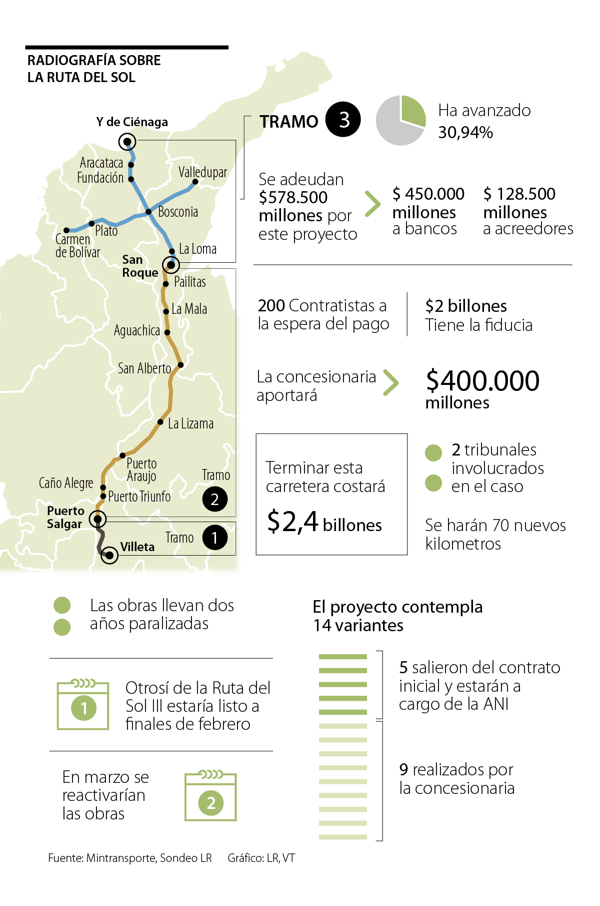 Y es que aunque LR contacto a la ANI para conocer los pormenores de los ajustes del otrosí, la entidad aseguró que “es un propósito del Gobierno Nacional la búsqueda de soluciones a los problemas que se tienen en infraestructura en esta región del país”. De hecho, desde la entidad se detalló que en la actualidad se adelantan dos procesos paralelos con el proyecto Ruta del Sol III: “Uno de caducidad que se lleva a cabo por la vicepresidencia jurídica de la ANI y otro de reactivación de obras a través de la Vicepresidencia ejecutiva de la misma entidad”.