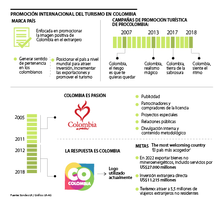 Y es que según la entidad de promoción, desde 2012 no se hacía un cambio en el mensaje de la marca país, y aseguró que es un momento clave para hacerlo y con el que esperan que a 2022 se logre llegar a US$27.000 millones en exportaciones de bienes no mineroenergéticos y también servicios; US$11.215 millones en inversión extranjera directa, y atraer 5,5 millones de turistas extranjeros no residentes.