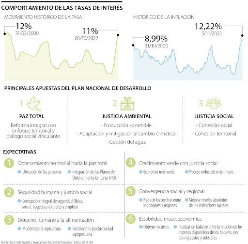 Eso sí, desde el DNP y con el Plan de Desarrollo, se pretende “enviar un mensaje sobre los temas que debemos reflexionar” y uno de esos puntos son las tasas de interés. El borrador deja ver que “las altas tasas de interés pueden ir en contra de la rentabilidad empresarial”.