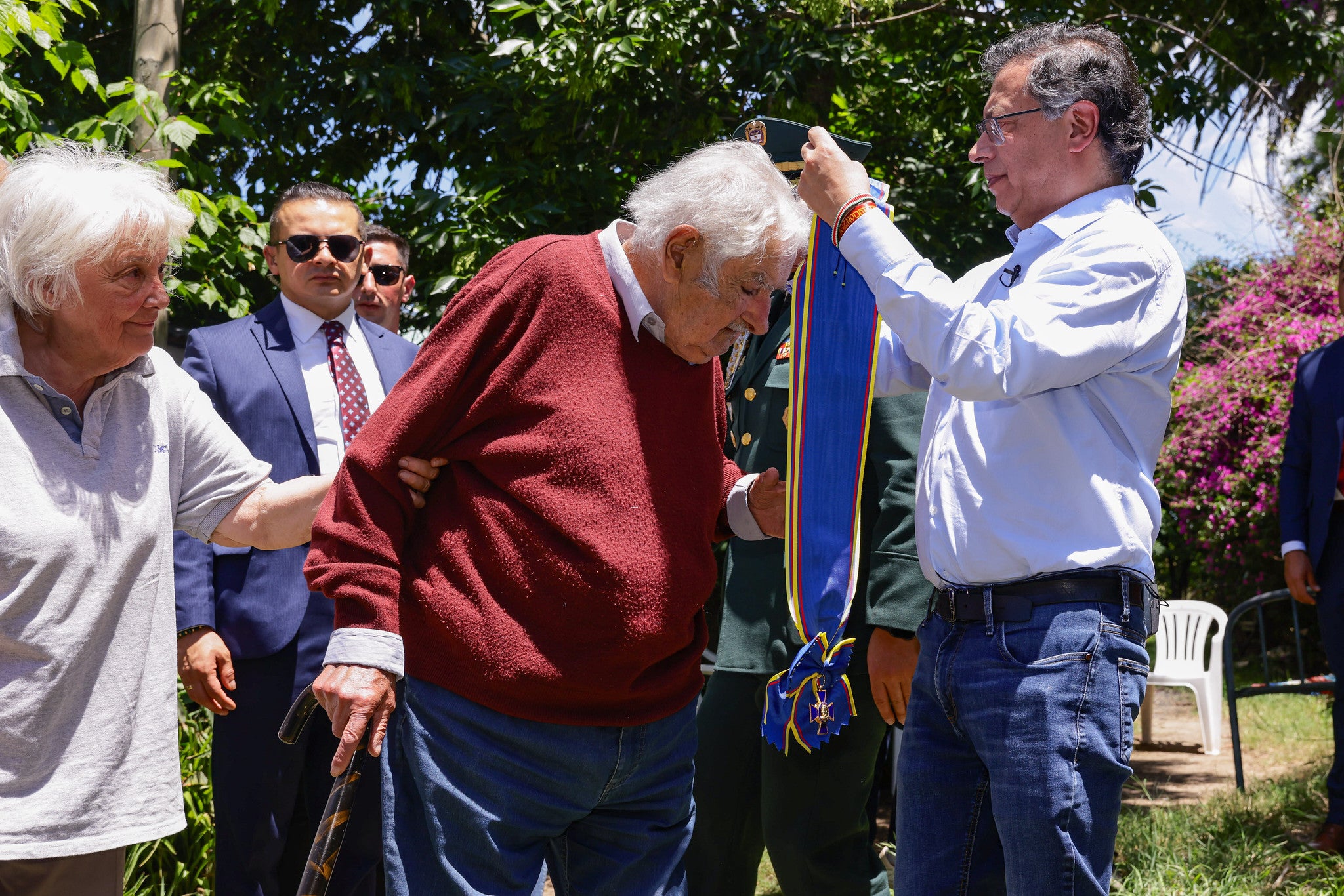 El presidente de Colombia, Gustavo Petro, le entregó al expresidente de Uruguay José Mujica la Cruz de Boyacá, la máxima condecoración para civiles de su país, en un evento realizado en la chacra del exmandatario uruguayo.