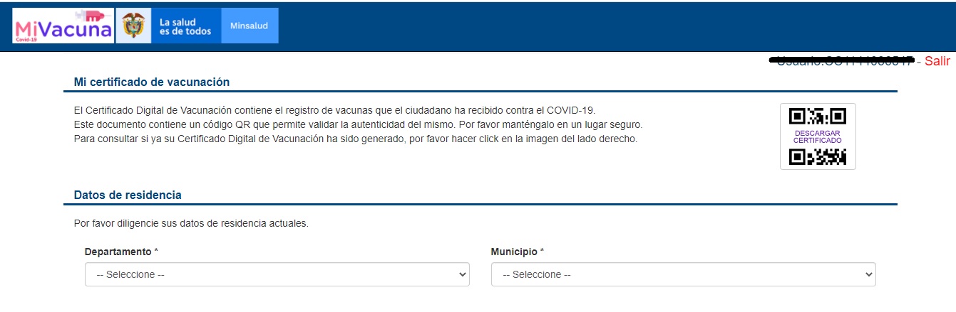 Si el usuario ya tiene la información de vacunación cargada, le aparecerá la opción "descargar certificado" sobre un código QR; dando click sobre este podrá generar el documento virtual.