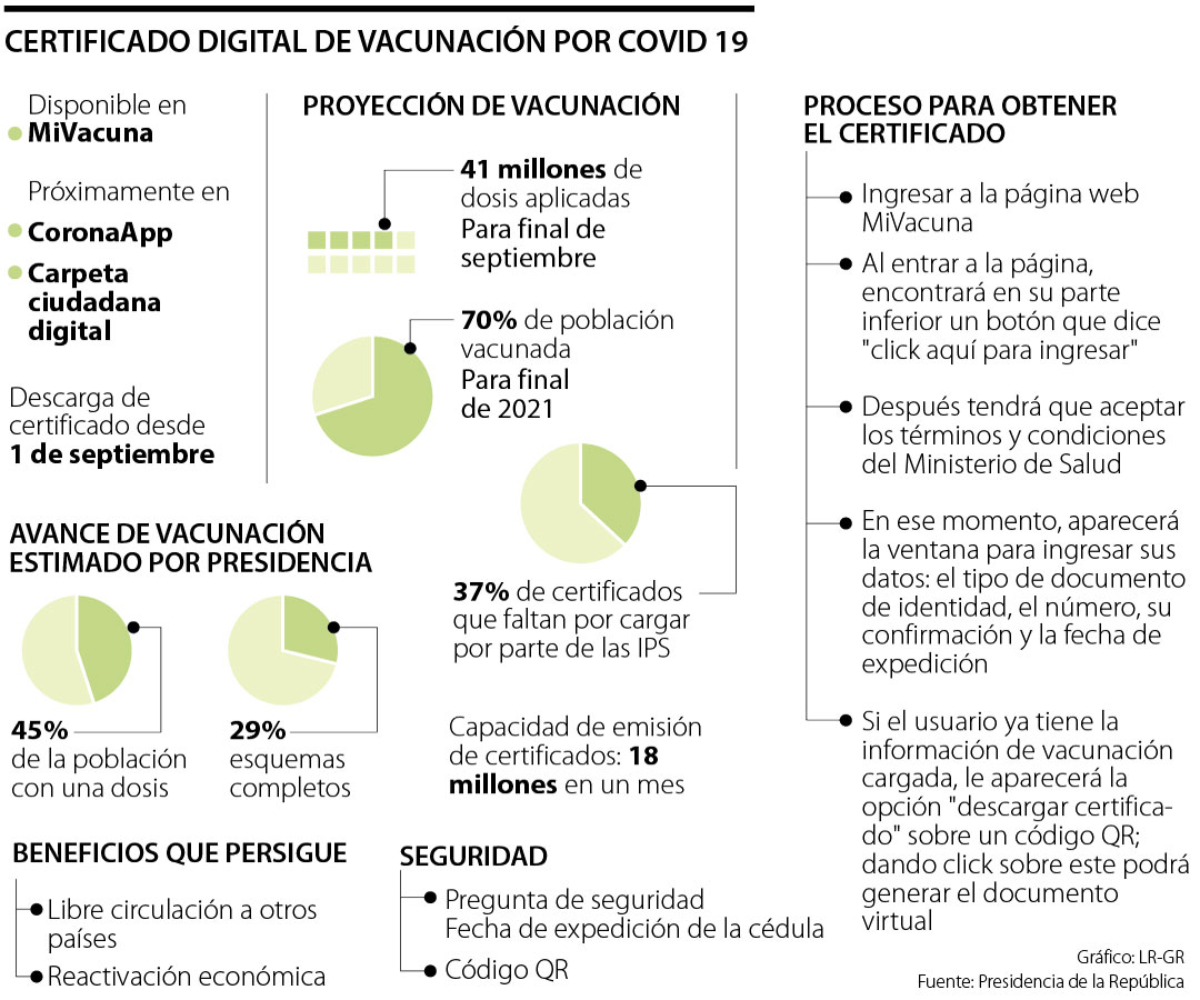 El Gobierno Nacional puso al servicio de los colombianos el certificado digital de vacunación, un documento oficial, confiable y gratuito que acredita al ciudadano si tiene una o dos dosis contra el covid-19.
