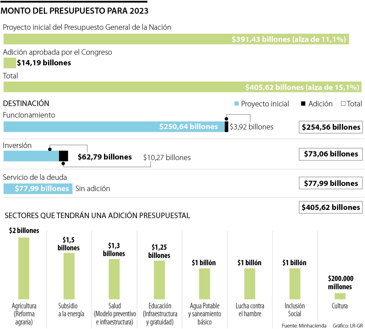 El Congreso aprobó por unanimidad la adición de $14,19 billones en el presupuesto de 2023 propuesta por el Ministerio de Hacienda