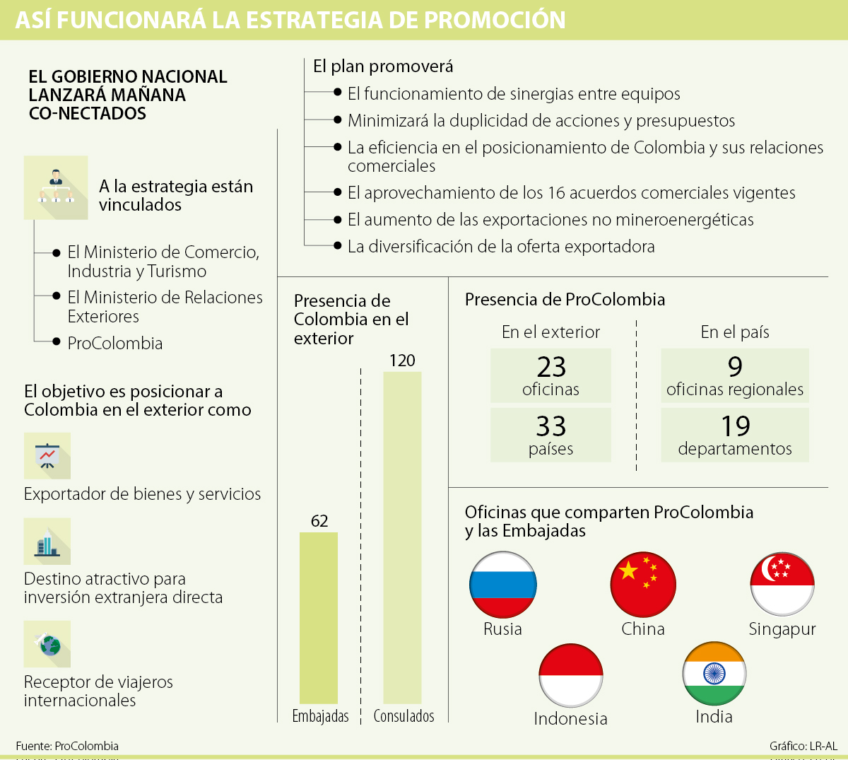 Se trata de un nuevo programa que, si bien está enfocado en poner orden al trabajo de las entidades en el exterior y de allí que esté involucrada la Cancillería, también hace parte de la propuesta de modificar la promoción en el exterior que hasta ahora ha adelantado ProColombia y que ha estado separada del Ministerio de Relaciones Exteriores.
