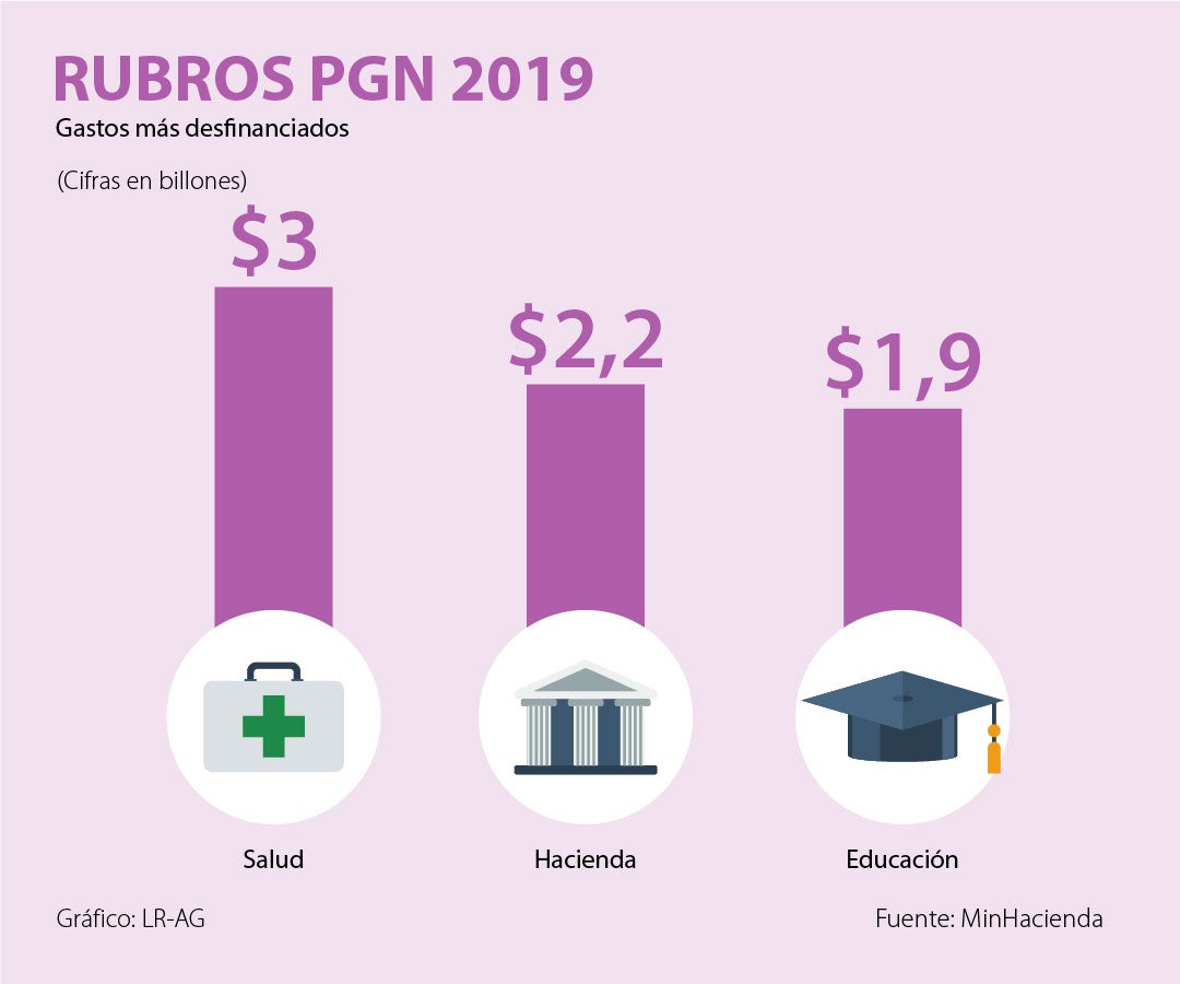 De acuerdo con los cálculos del Ministerio de Hacienda, el hueco más grande estaba en el rubro de la salud en el que hacían falta hasta $3 billones para garantizar la cobertura de los 45 millones de colombianos y asegurar la prestación de servicios no POS. El segundo sector más desfinanciado era el de Hacienda en el que hacían falta $2,2 billones, para financiar el posconflicto e implementar los Acuerdos de Paz.