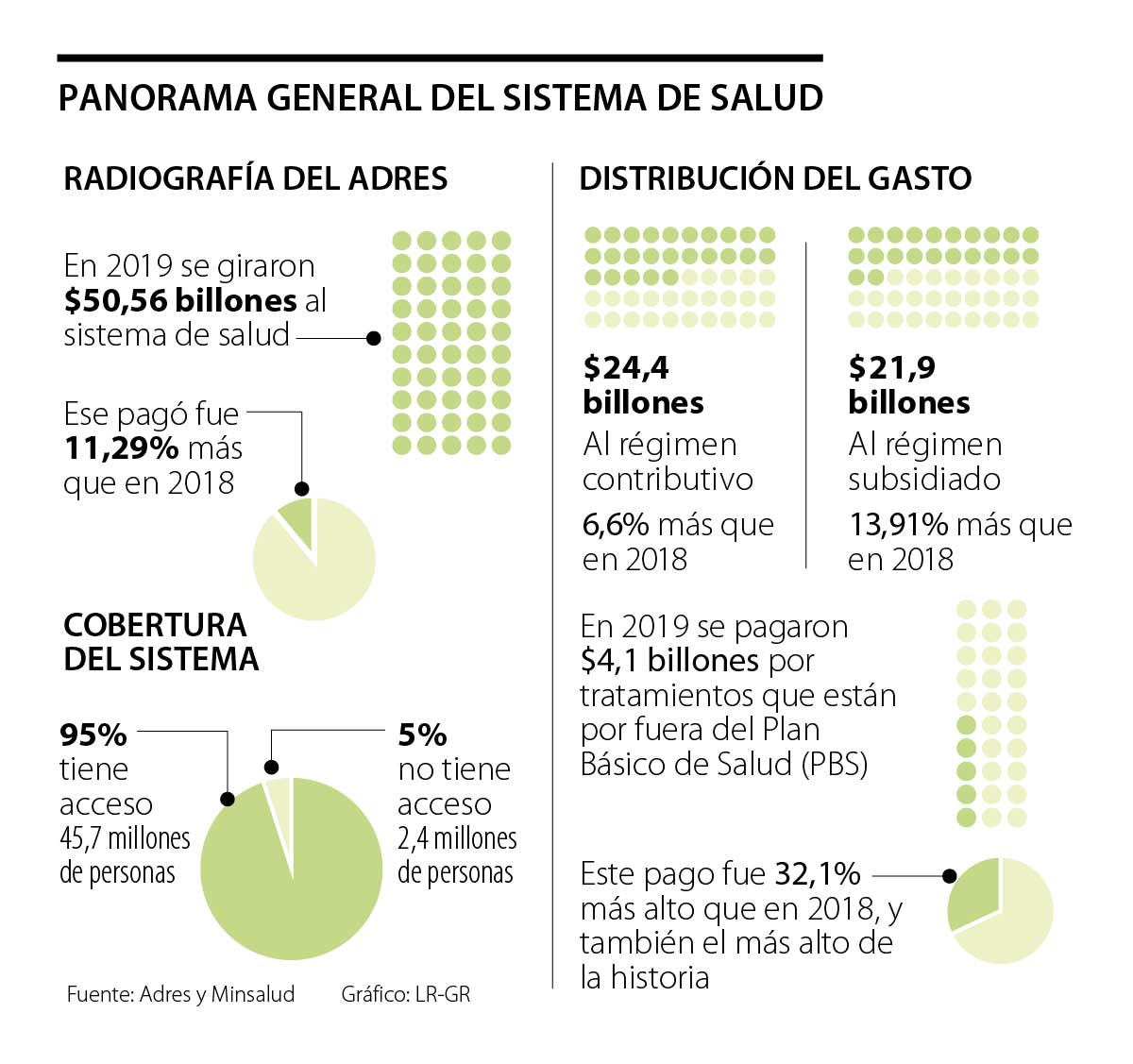 De hecho, según la Administradora de los Recursos del Sistema General de Seguridad Social en Salud (Adres), entre 2018 y 2019, se aumentó en 32,1% la cantidad pagada por esos servicios, para un total de $4,1 billones. Y este monto es, literalmente, el más alto que se ha cancelado por ‘no PBS’ desde que funciona el actual modelo de prestación de servicio de salud. Esto sugiere que se tiene que hacer una revisión del listado de tratamientos que no pertenecen al mencionado plan.