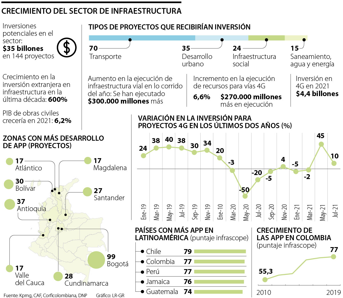 Después de Chile, Colombia es el segundo país de toda América Latina con más modelos de participación de la inversión privada en la construcción de infraestructura - un esquema conocido como APP (Asociación Público-Privada)-, según el índice Infrascope, establecido como unidad de medición por un estudio de Kpmg.
