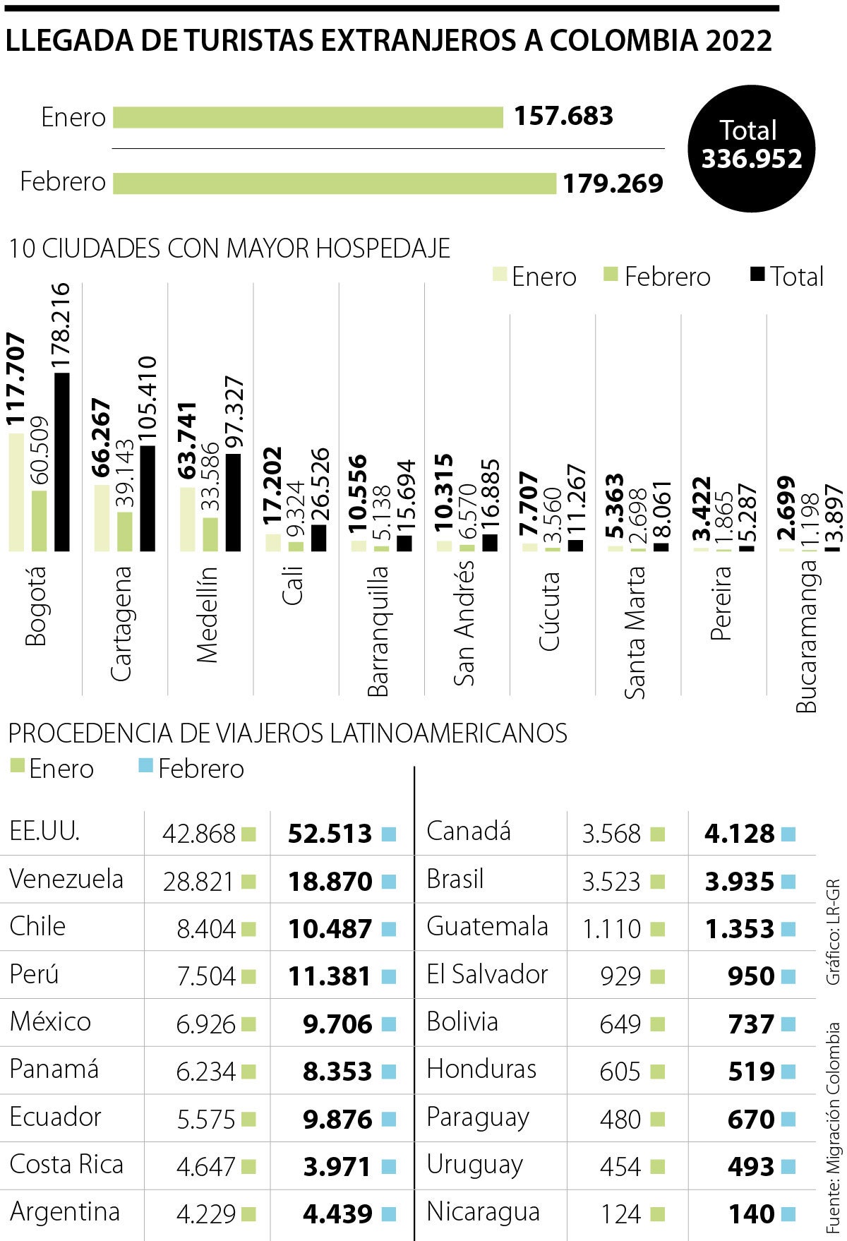 Mientras que en enero y febrero del año pasado el total de visitantes extranjeros llegó a 82.890, en 2022 la cifra fue de 336.952