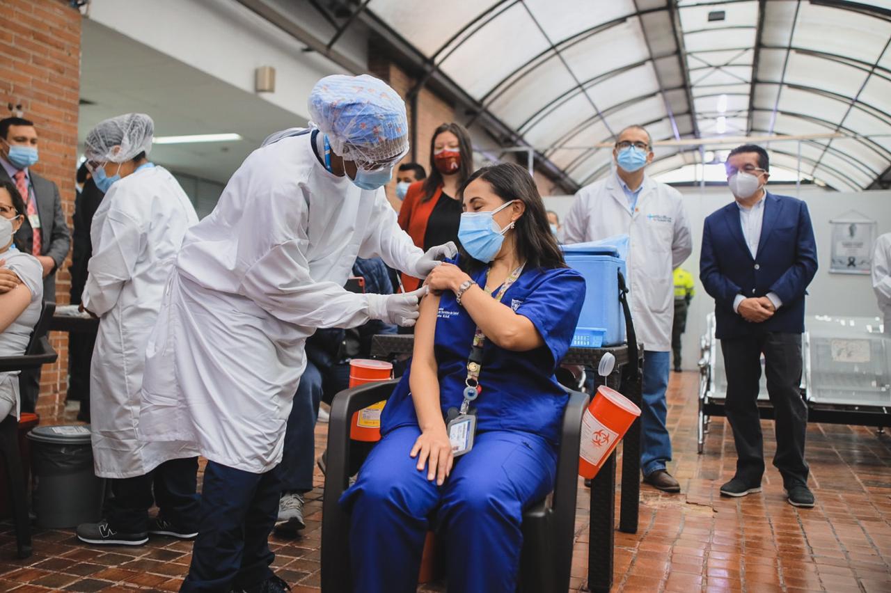 En Bogotá, la vacunación comenzó este jueves en la Clínica Colombia. La primera en ser vacunada fue Claudia Benavides, una enfermera que trabaja hace varios años dicha clínica.