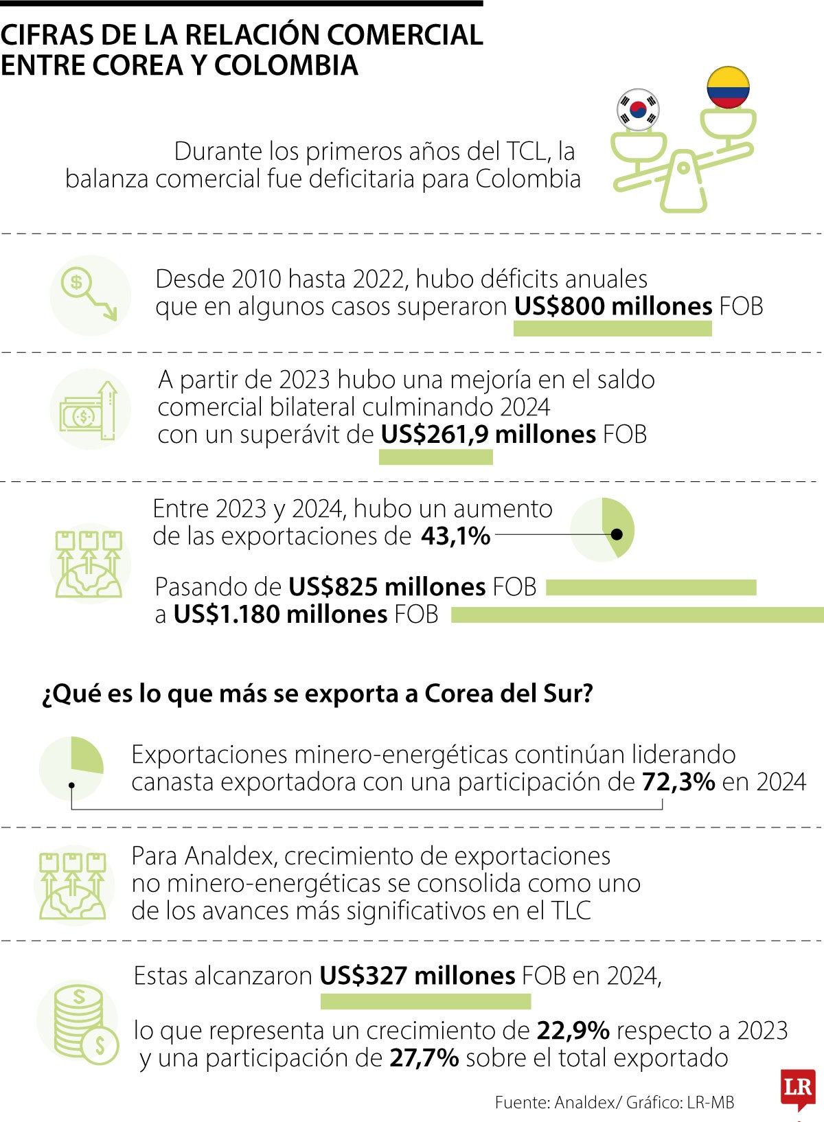 Esta dinámica se explicaba por la alta importación de automóviles, maquinaria y productos tecnológicos procedentes de Corea del Sur, mientras que las exportaciones colombianas se concentraban principalmente en productos minero-energéticos, sin lograr equilibrar la balanza comercial.