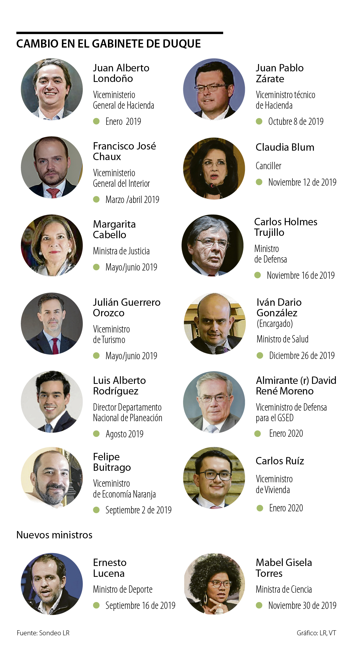 Antes de estos nombramientos se cuenta también la llegada de Felipe Buitrago al Viceministerio de Economía Naranja; Julián Guerrero, al Viceministerio de Turismo; Margarita Cabello al Ministerio de Defensa; Francisco Chaux al Viceministerio del Interior y Juan Alberto Londoño, al Viceministerio General de Hacienda.