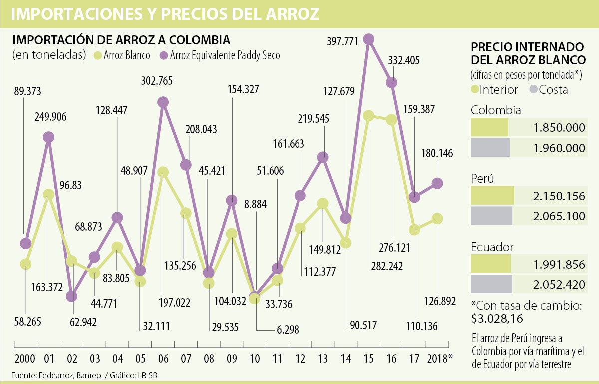 De acuerdo con Rafael Hernández, gerente general de la Federación Nacional de Arroceros (Fedearroz), el precio del arroz en Perú es más caro que en Colombia, por lo que no es claro cómo lo van a vender más barato en el país.