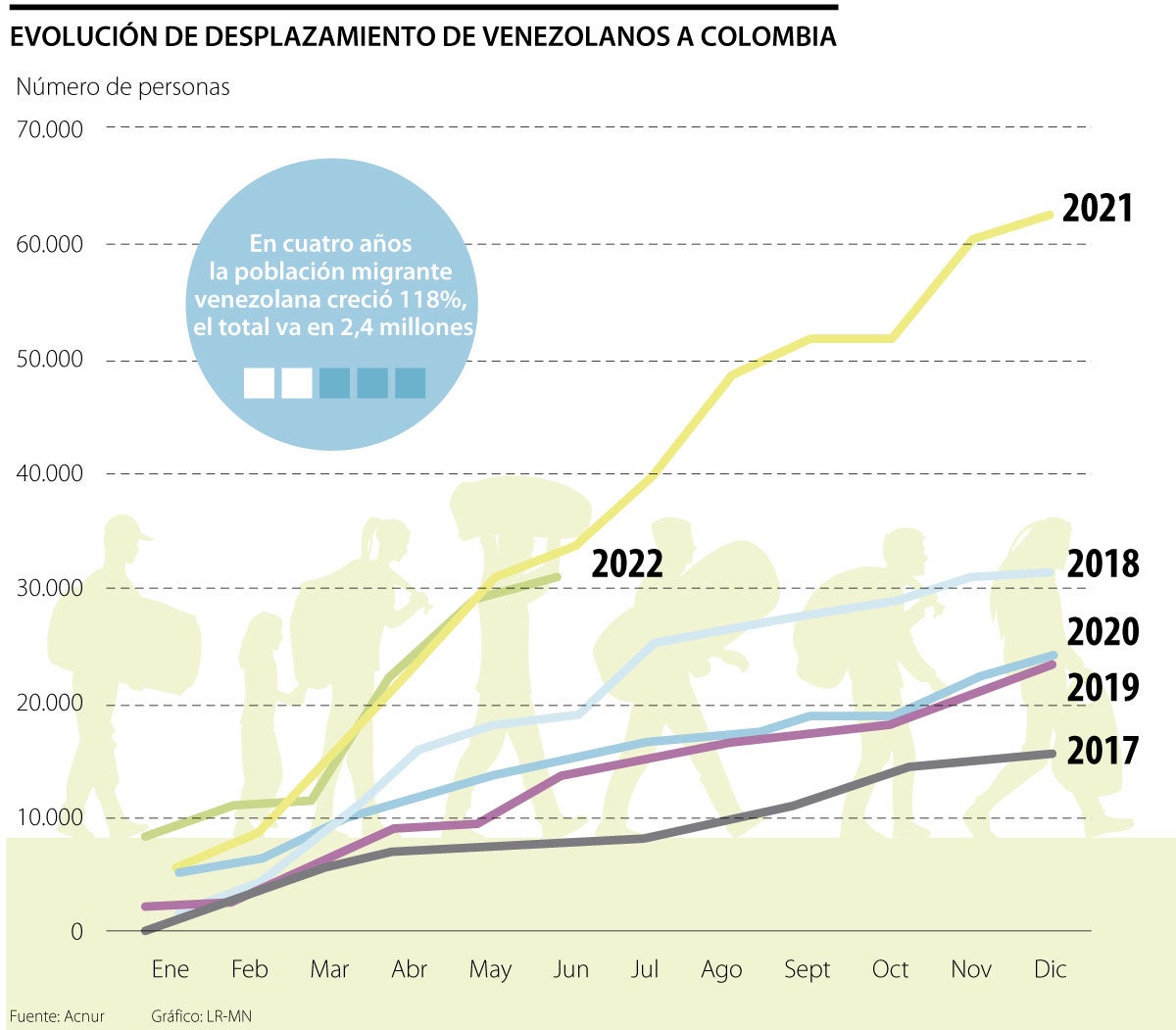 En cuatro años la población venezolana creció 118,8%, pasó de 1,1 millones a 2,5 millones, según cifras de Migración Colombia a corte de febrero de 2022. Es decir, Colombia acoge a 36,7% de los 6,8 millones de migrantes venezolanos que hay en todo el mundo.