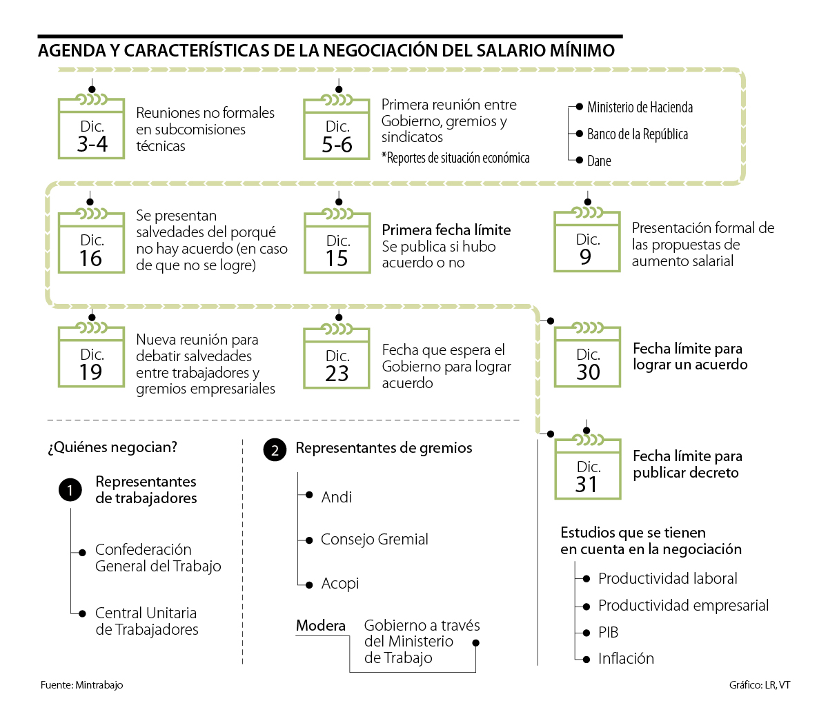 De hecho, entre el 5 y 6 de diciembre, delegados del Dane, Ministerio de Hacienda y Banco de la República, entregarán los balances del ritmo de la economía para que estos sean tenidos en cuenta dentro de las reuniones de negociación.