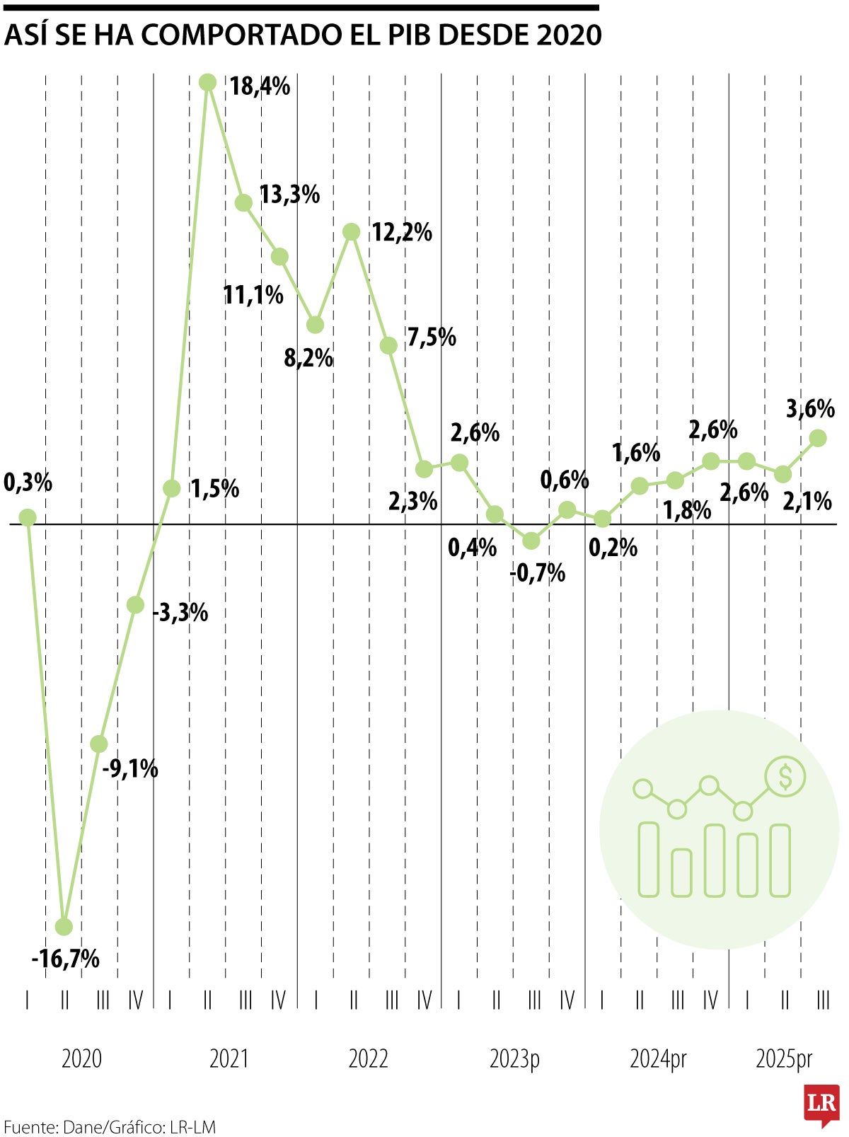 El Dane dio a conocer ayer que el Producto Interno Bruto de Colombia creció un 3,6% durante el tercer trimestre del año, comparado con el mismo periodo de 2024.