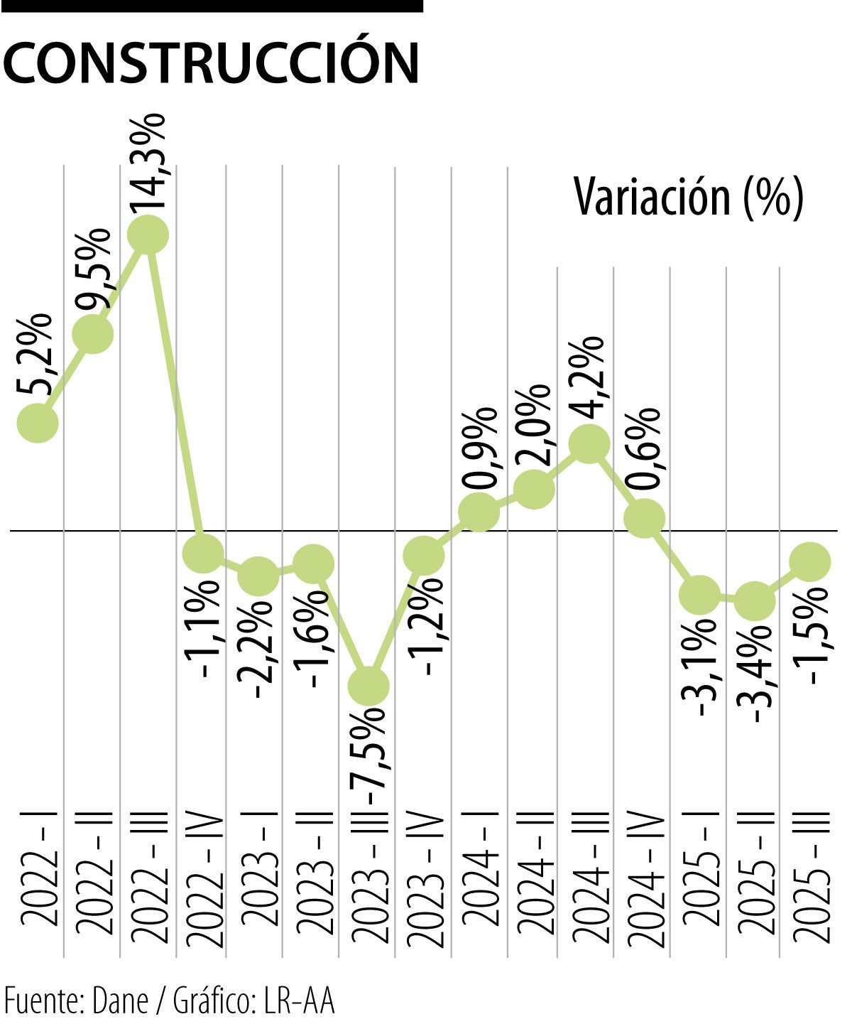 La inversión en vivienda se contrajo 8,6% en el tercer trimestre del año, lo que llevó al descenso del sector de la construcción de 1,5%, pese al avance que vio la construcción de obras civiles, de 13%. Este sector ha registrado cifras negativas durante todo el año. En el primer trimestre cayó 3,1%; en segundo, la contracción fue de 3,4%. Para la Andi, el país está desaprovechando la posibilidad de impulsar los 132 subsectores de la economía a través de la cadena de la construcción.