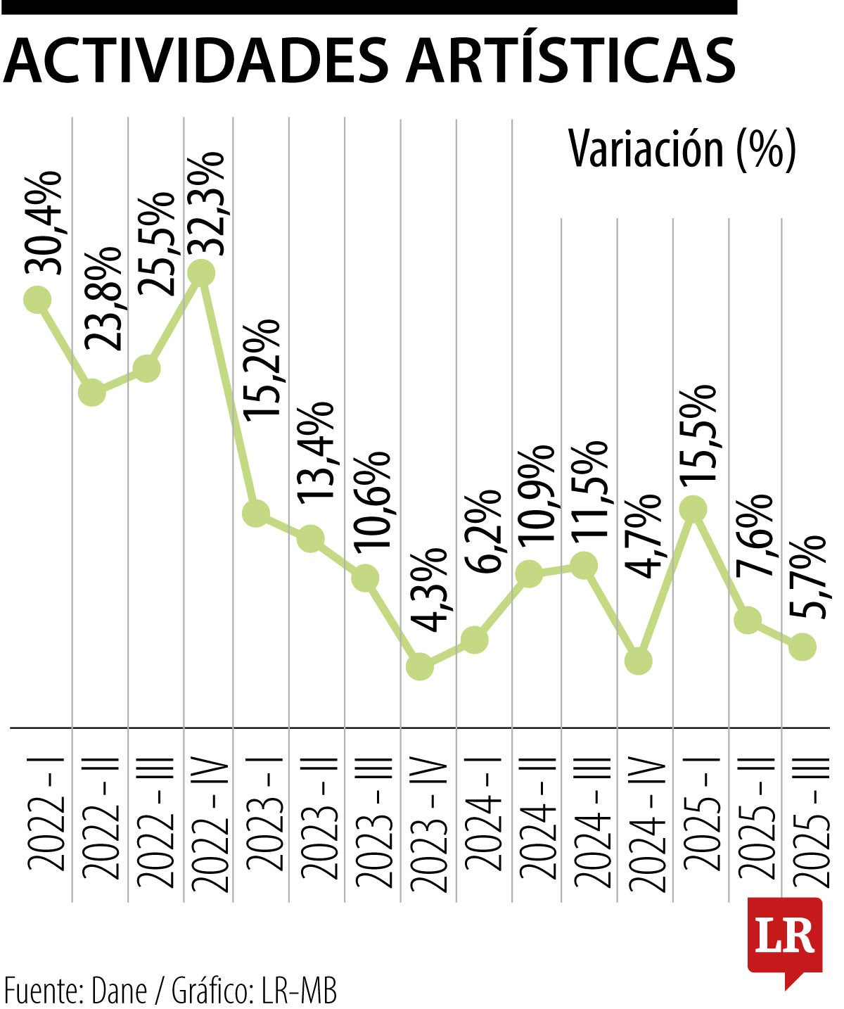 El segmento de actividades artísticas, de entretenimiento y actividades de los hogares estuvo jalonado casi en su totalidad por los conciertos, eventos masivos. Del crecimiento de 5,7% de este sector, 5,3 puntos porcentuales los aportaron estas actividades de recreación, lo que evidenció una desaceleración en el rubro de las apuestas en línea, cuyo subsector aportó solo 0,3 puntos del dato general de la actividad económico. Para el Dane, esto evidencia una normalización del negocio.