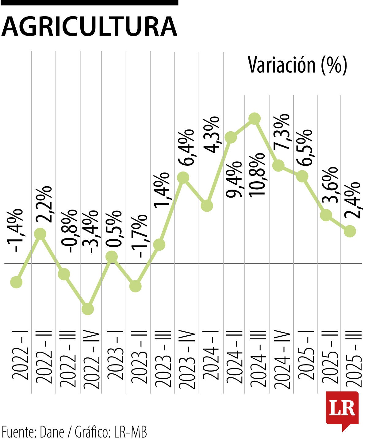 El crecimiento del sector agro comenzó a normalizarse tras los incrementos desproporcionados del año pasado a tasas de 9,4% y 10,8%. En el tercer trimestre de este año creció 2,4% y mantuvo la tendencia a la baja. Pese a que el rubro continuó en terreno positivo, ya que completó más de dos años de crecimientos, la producción de alimentos perecederos evidenció un retroceso, influenciado por las altas lluvias y el repunte del precio de algunos insumos en los mercados globales.