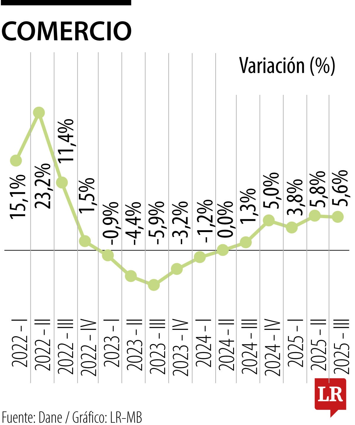 El segmento de comercio y reparación; transporte y almacenamiento; alojamiento y servicios de comida fue el segundo de mayor crecimiento económico durante el tercer trimestre, con un aumento de 5,6% del PIB y un aporte de 1,2 puntos porcentuales.