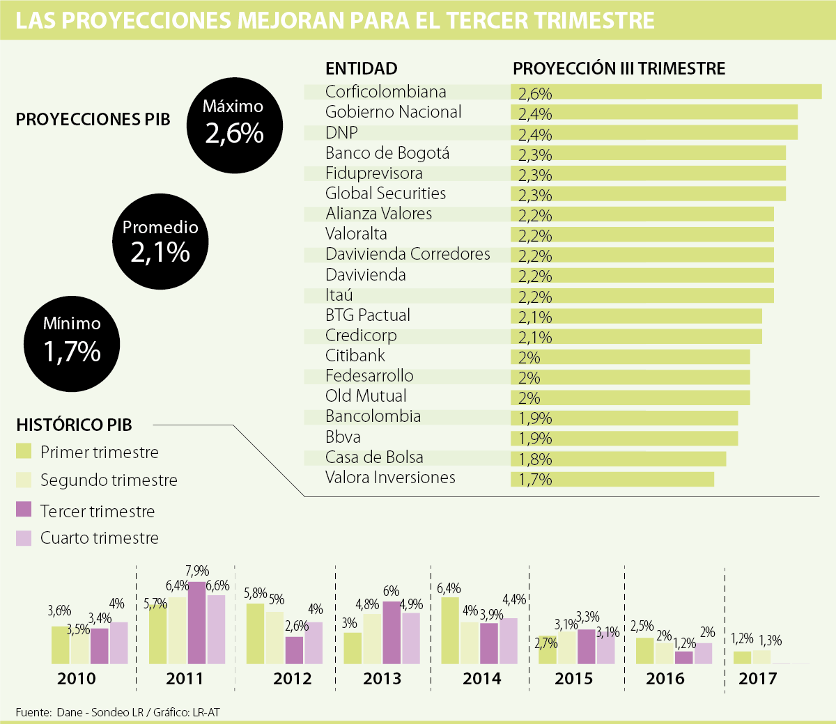 La principal justificación de este grupo de entidades es que la economía colombiana tiene un mejor panorama para el tercer trimestre que se va a reflejar en sectores como petróleo, minas, construcción y agro.