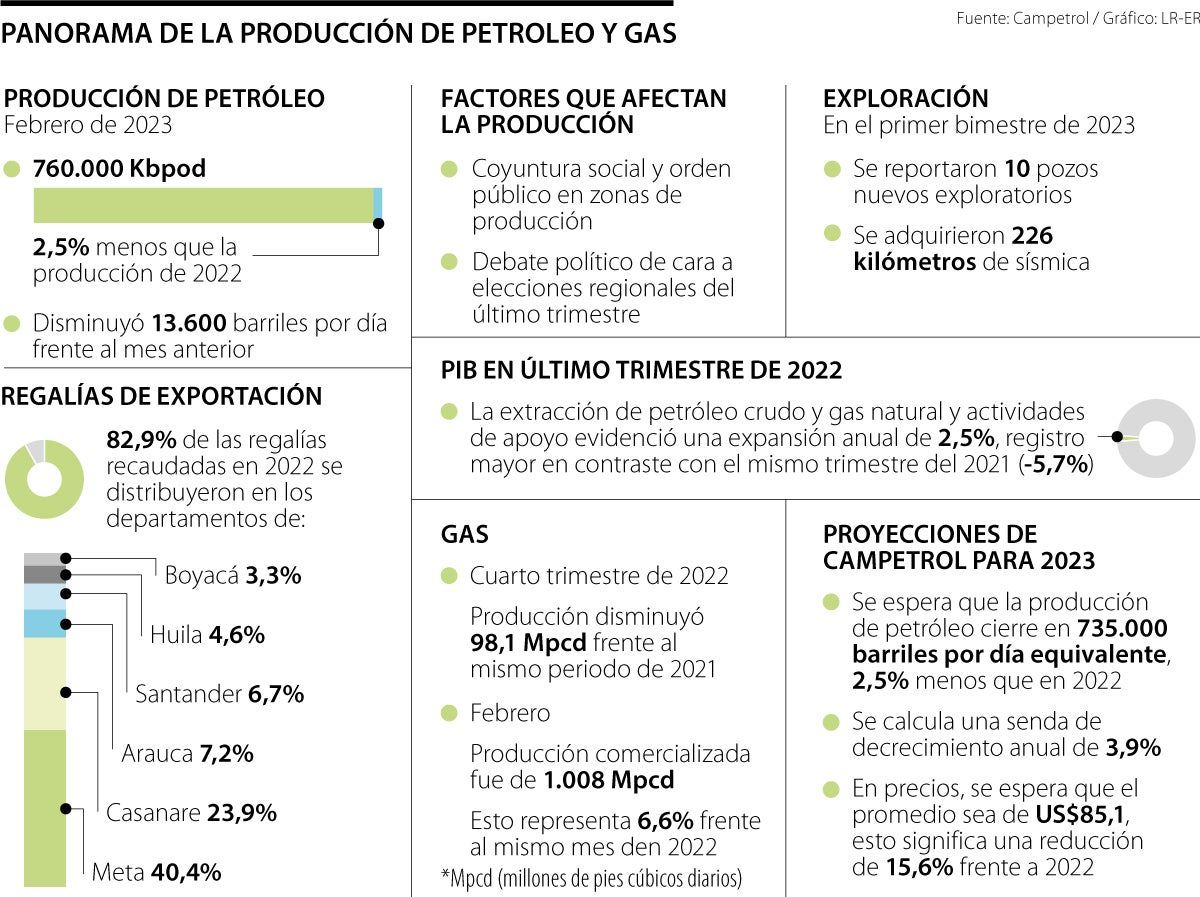 Se espera que en producción de petróleo, el año 2023 cierre con un promedio de 735 Kpopd, 2,5% menos que la producción de 2022 por los factores ya mencionados.