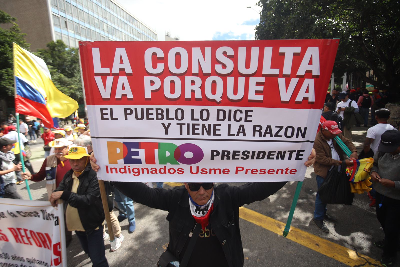 En Bogotá, las concentraciones iniciaron hacia las 9:00 a. m. en distintos puntos de la ciudad y tienen como destino la Plaza de Bolívar, donde se espera una gran concentración hacia la tarde. Las manifestaciones se dan como respuesta a la negativa del Senado de avanzar en la consulta popular propuesta por el presidente Gustavo Petro, junto con el estancamiento de otras iniciativas sociales del actual Gobierno.
