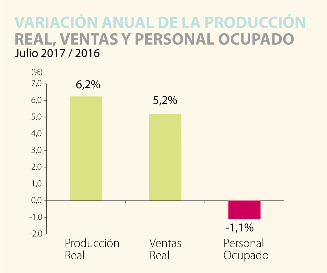 Según el Departamento Administrativo Nacional de Estadística (Dane) la producción real industrial en julio de 2017 subió 6,2%, la variación de las