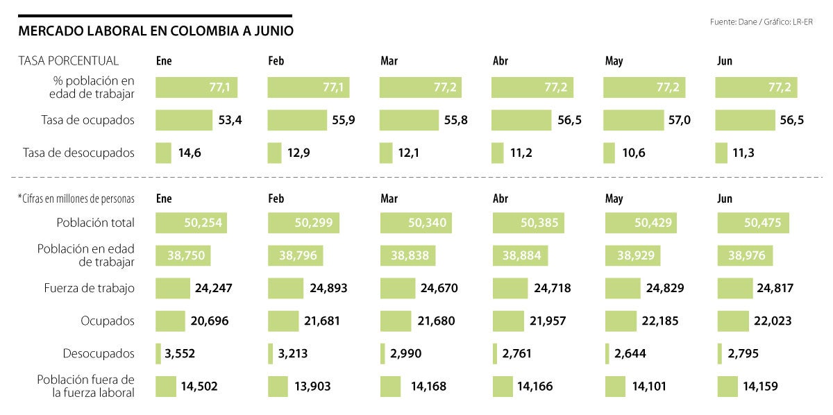 Sin embargo, la cifra frente a mayo representó un repunte del desempleo. Al quinto mes del año se reportaban 2,6 millones y la tasa de desempleo estaba en 10,6%; o visto de otra forma, en junio se perdieron 151.000 trabajos.