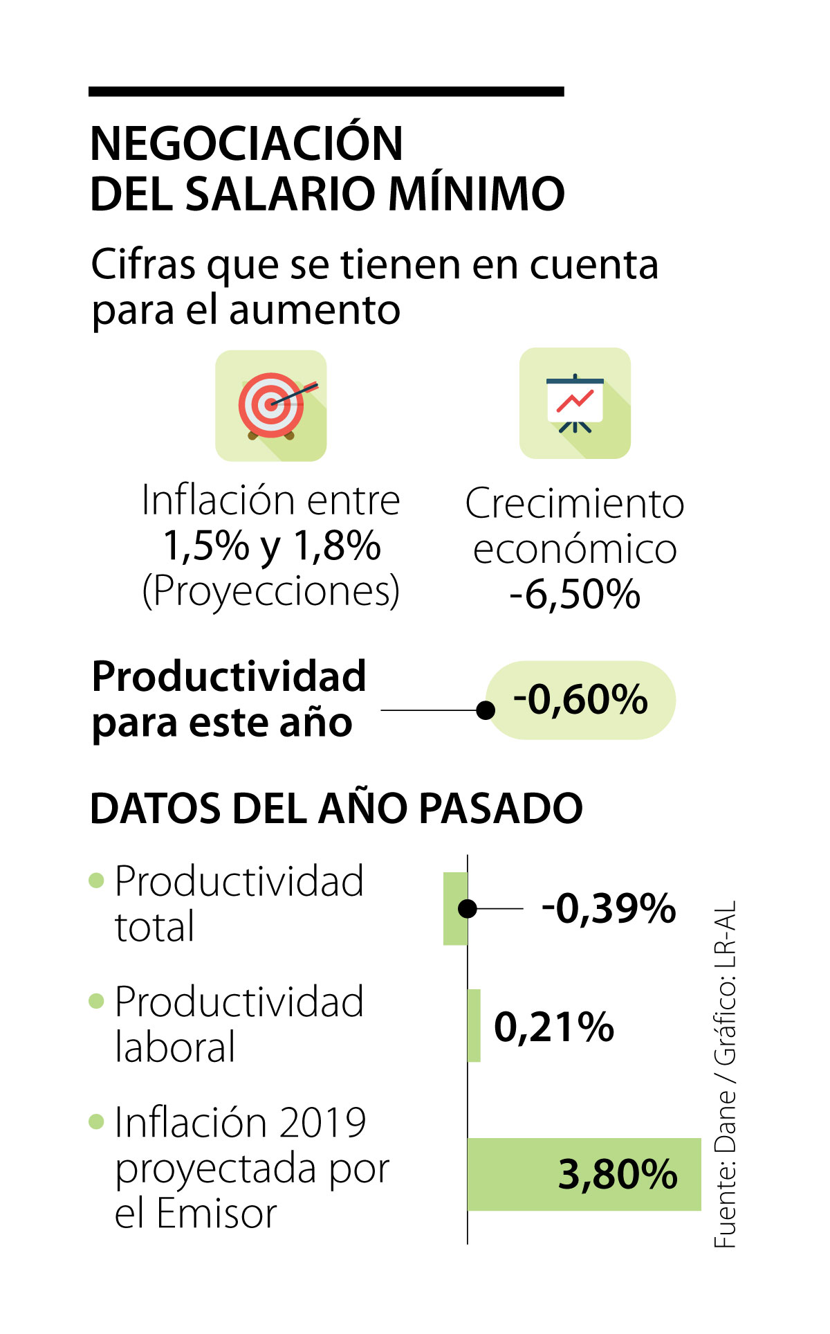 Teniendo en cuenta esta reciente publicación, actualmente los sindicatos, empresarios y el Gobierno tienen sobre la mesa de concertación una proyección que sitúa entre 1,5% y 1,8% el Índice de Precios al Consumo (inflación); una proyección por parte del Gobierno Nacional para el PIB de -6,5% y un índice de productividad laboral que se ubicó en -0,6%, según los cálculos preliminares publicados por la entidad responsable de la producción de estadísticas.