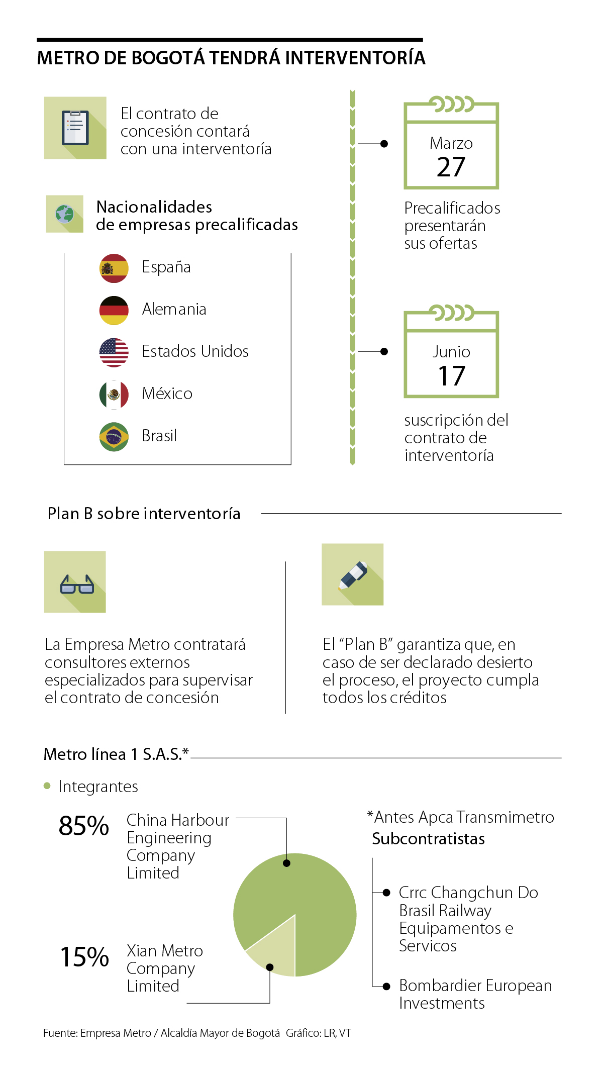 Lo que se sabe es que en un inicio, para la construcción de la primera línea del Metro de Bogotá ya se tenía una lista corta de seis grupos de consultores conformados por empresas de España, Alemania, Estados Unidos, México y Brasil, para el proceso de recalificación, pero por los choques externos, la empresa consideró prudente adoptar medidas preventivas y excepcionales aplicables, en caso de que, dadas las circunstancias económicas, ninguna empresa participe del proceso.