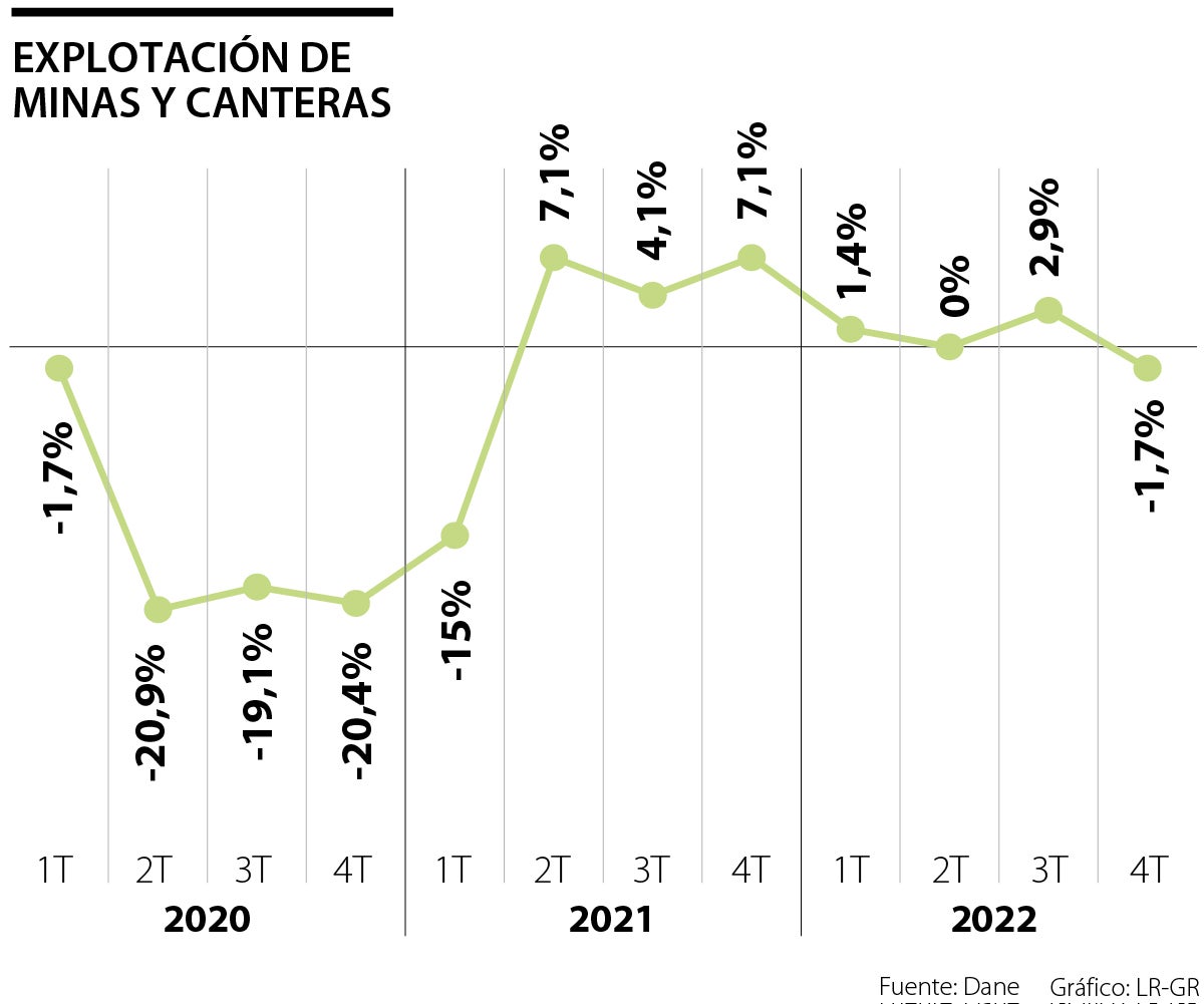 Según la Asociación Colombiana de Minería (ACM), el sector minero espera un incremento mayor para el primer trimestre del año, cercano al 4%, impulsado por la fuerte demanda de minerales que ha ocasionado la condición geopolítica del Este de Europa. Las entidades financieras apostaron a caída del sector de minas y canteras.