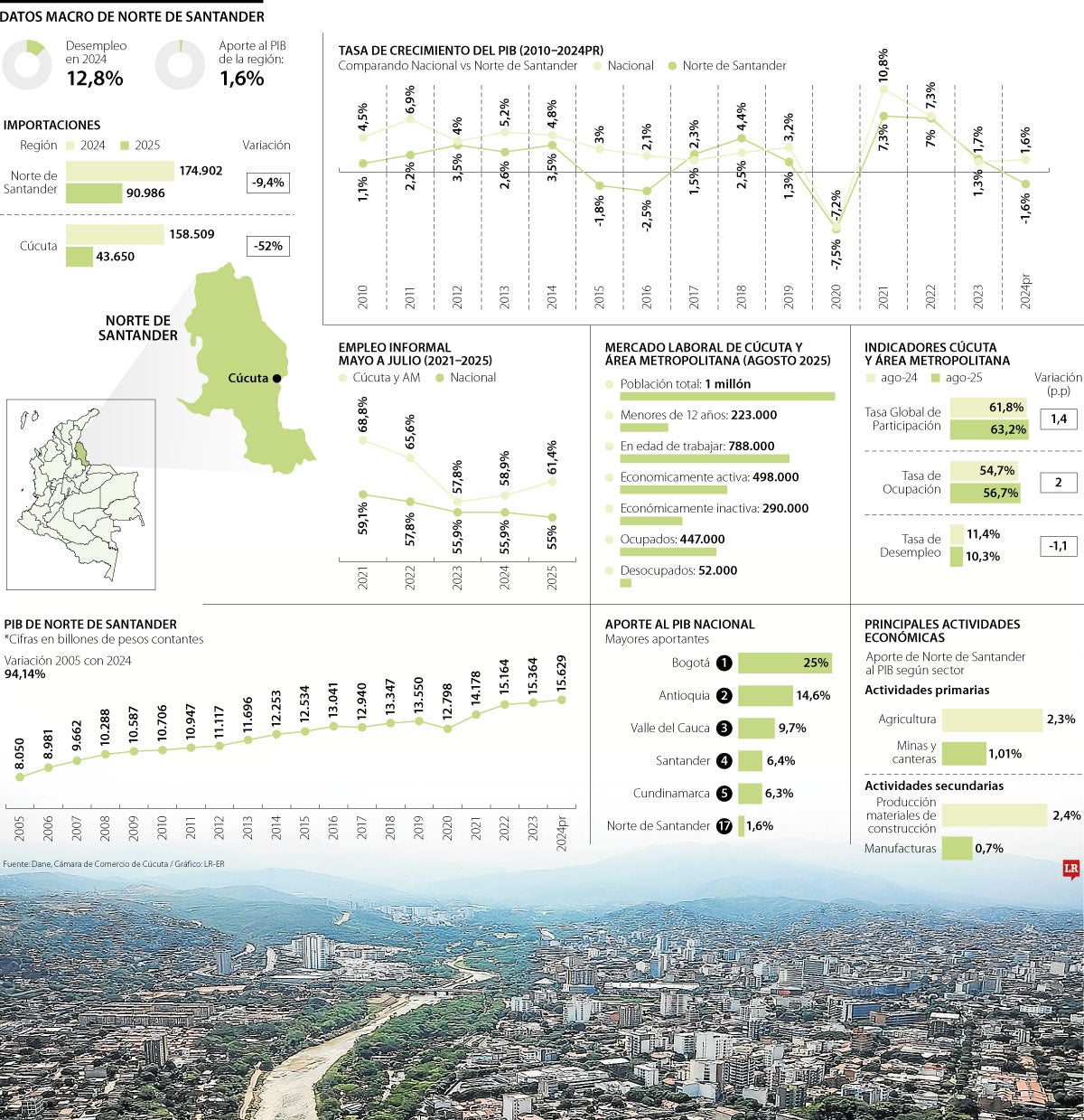 El departamento de Norte de Santander aporta 1,6% del PIB de la nación, según los últimos datos del Dane, y es el décimo departamento con mayor crecimiento de su Producto Interno Bruto en los últimos 20 años, pasando de $8 billones a casi $16 billones.