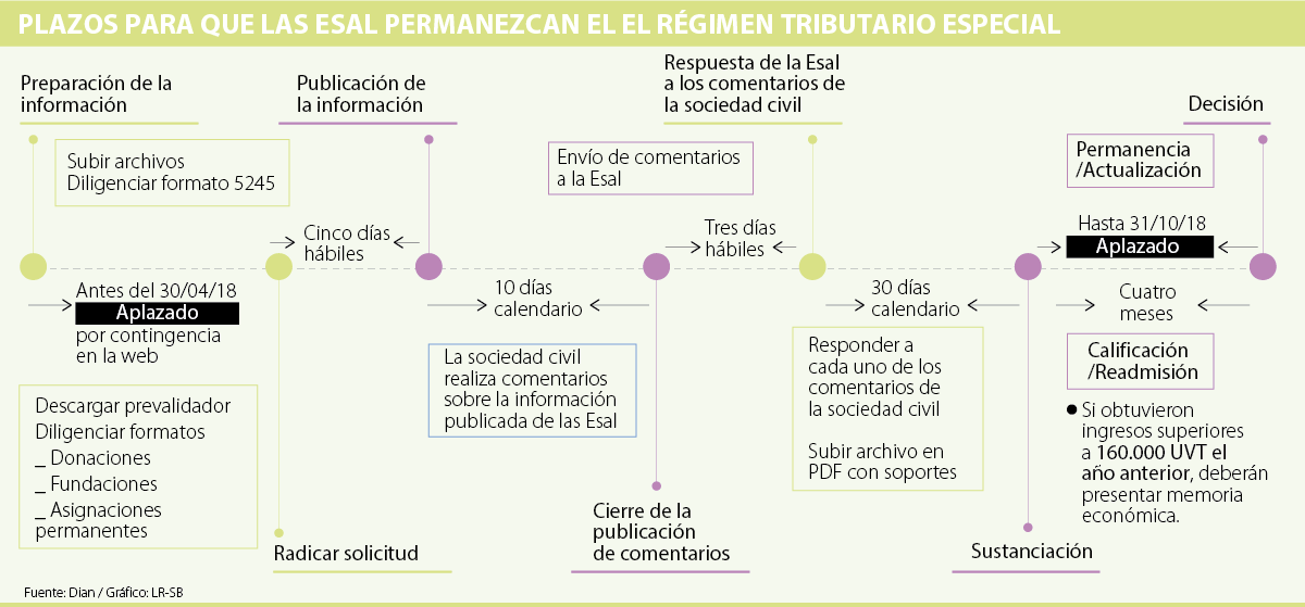 Si querían conservar su beneficio fiscal en materia del impuesto sobre la renta, las más de 71.000 entidades sin ánimo de lucro (Esal) que existen en el país tenían la obligación de realizar del 4 al 30 de abril su solicitud de permanencia a través del servicio informático electrónico del nuevo Régimen Tributario Especial dispuesto por la Dirección de Impuestos y Aduanas Nacionales (Dian).