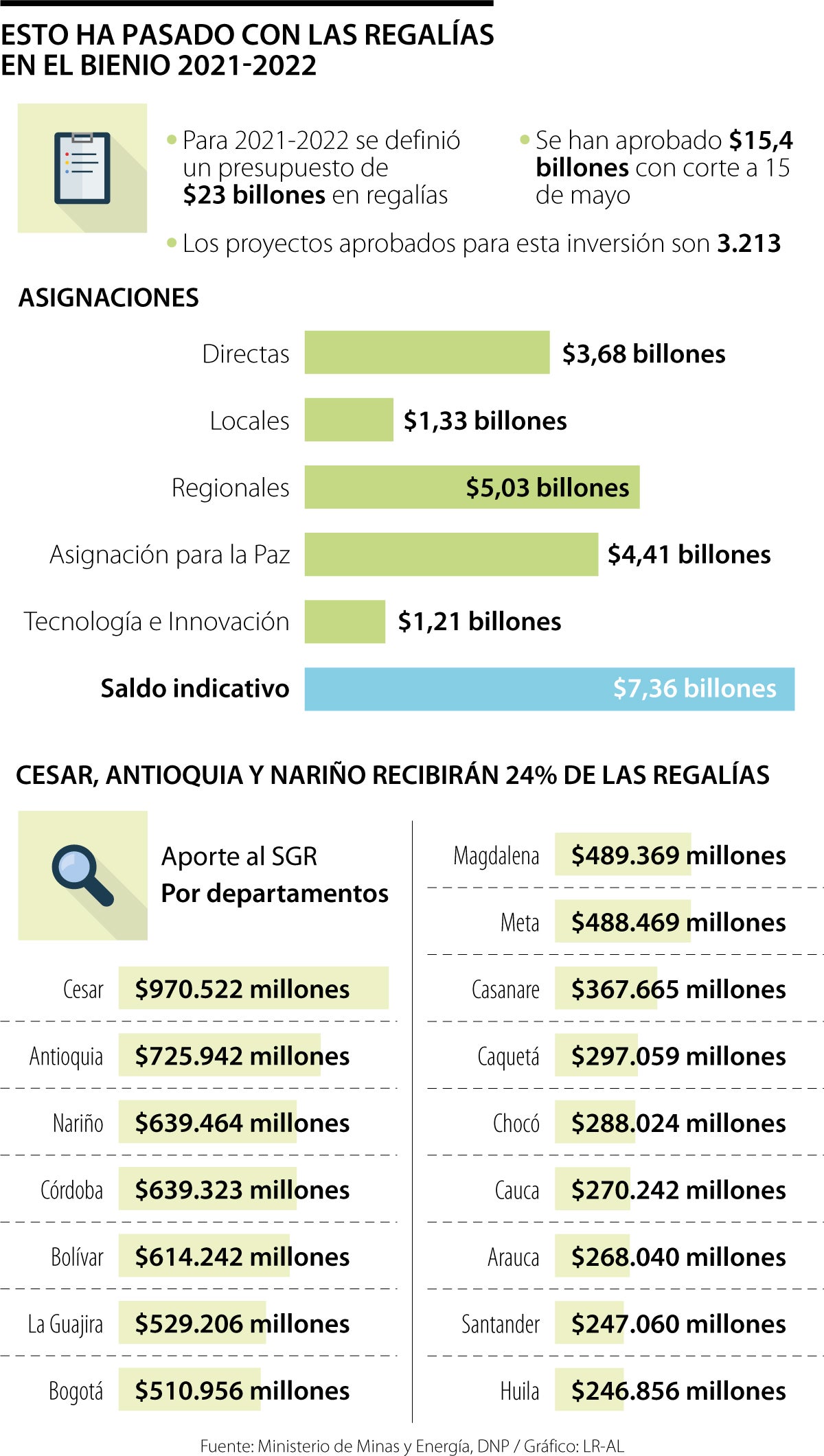 La periodista Valeria Santos afirmó que por medio de un “sofisticado mecanismo de corrupción”, los funcionarios nombrados anteriormente se apropiaron hasta de $500.000 millones en coimas de las regalías que estaban destinadas para implementar el Acuerdo de Paz. Según la investigación, hubo un agravante adicional por cuanto que durante este gobierno se adelantó el presupuesto en materia de regalías de la próxima década.