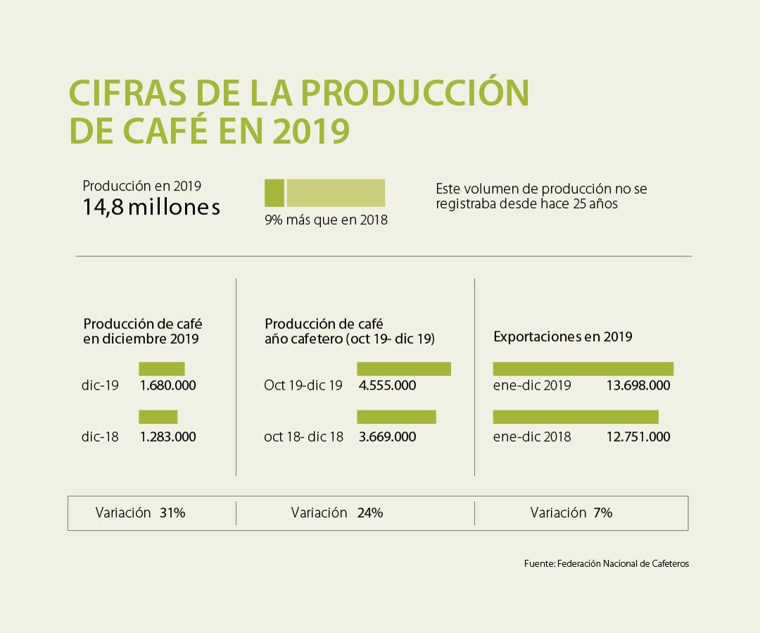 Nosotros hemos venido profesando mantener una renovación de por lo menos 10% del área cafetera por año, lo que significa entre 80.000 y 85.000 hectáreas. En 2019 llegamos a 83.200 hectáreas y ese ejercicio, que hemos hecho con cierto grado de consistencia en los últimos cinco años, permitirá que, básicamente, esté garantizada la producción de café de Colombia entre 14 millones y 14,5 millones de sacos anuales para los próximos tres o cuatro años, si las condiciones climáticas así lo permiten.