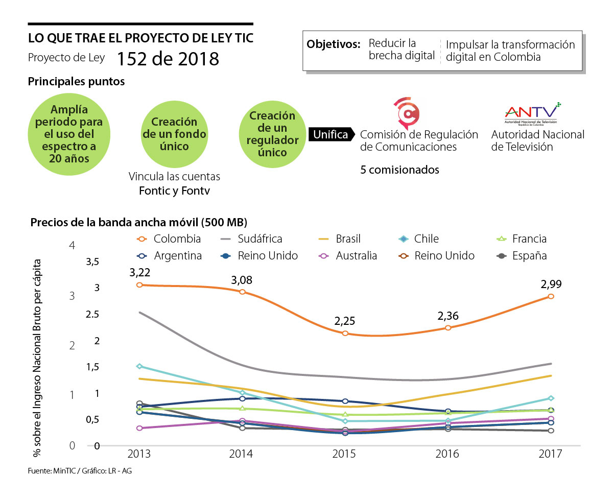 Dentro de las bases de la ponencia que entrará a discutirse, y que ha recibido opiniones a favor y en contra, los principales puntos que destacan son la ampliación en la duración de los permisos para uso del espectro a 20 años (en el proyecto inicial presentado en septiembre la propuesta era a 30 años) y la creación de un regulador único, con lo que la Autoridad Nacional de Televisión (Antv) desaparecería y sus funciones pasarían a la Comisión de Regulación de Comunicaciones (CRC).