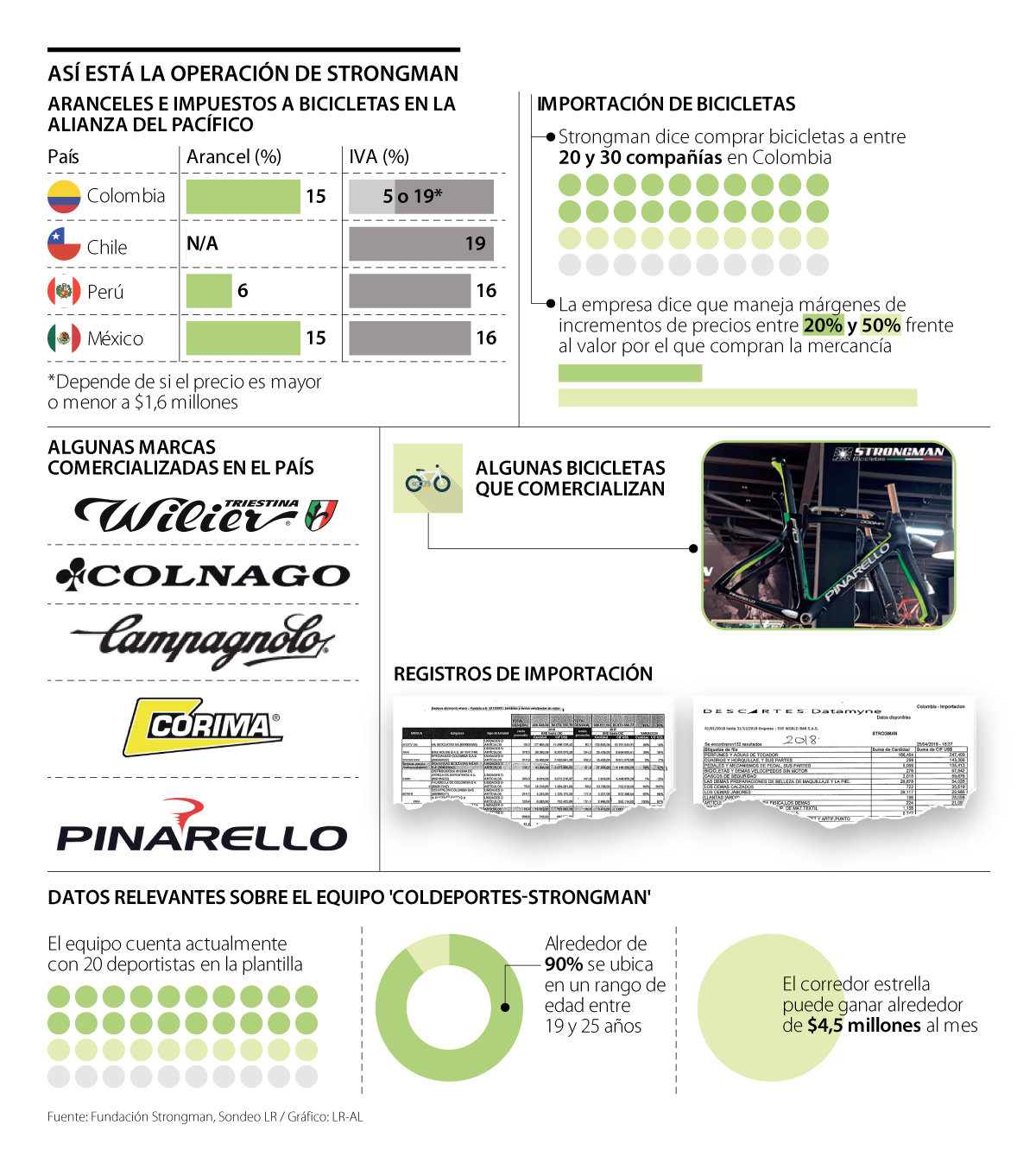 El dueño de la Fundación Strongman le confirmó a LR que la Dian ya hizo una visita para revisar una documentación de la compañía. Sobre la manera en la que realizan sus procesos de importación, Aristizábal aseguró que “Strongman le compra a varias empresas, como a 20 o 30 empresas acá en Colombia, que importan bicicletas desde varios países. Siempre se ha hecho así, desde hace más o menos 12 años. Estas empresas le venden a Strongman y le venden a todo el país”. Sobre el incremento de los precios, aseguró que “se trabaja más o menos con un margen de incremento de 20% o 30% frente al valor por el que compramos, o incluso puede variar entre 40% y 50% dependiendo de los productos, como cascos, accesorios o ropa deportiva”.
