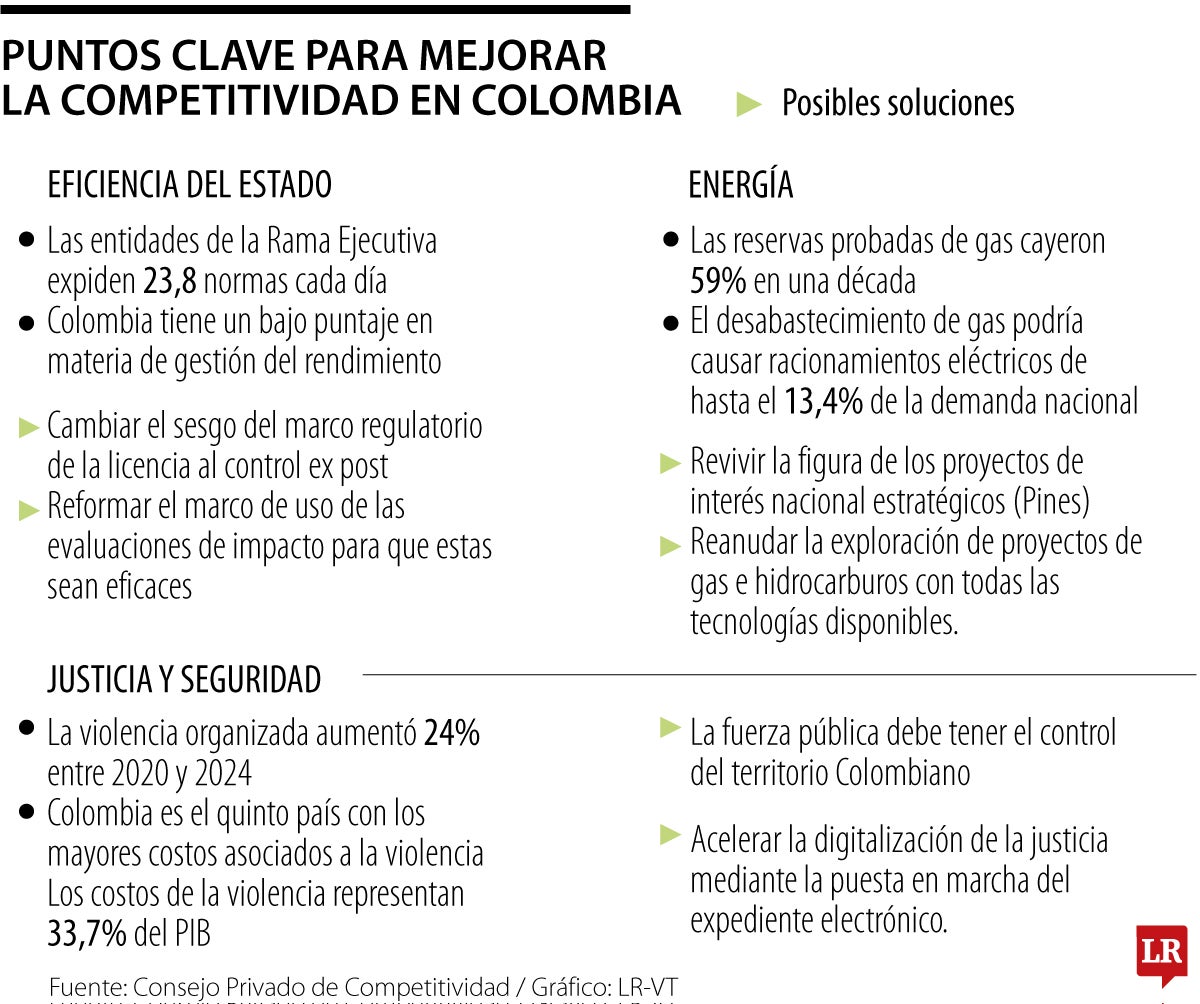 El informe toma más de 10 segmentos diferentes en los que encontró problemas urgentes por solucionar y las tareas para mejorar la competitividad en esos aspectos.