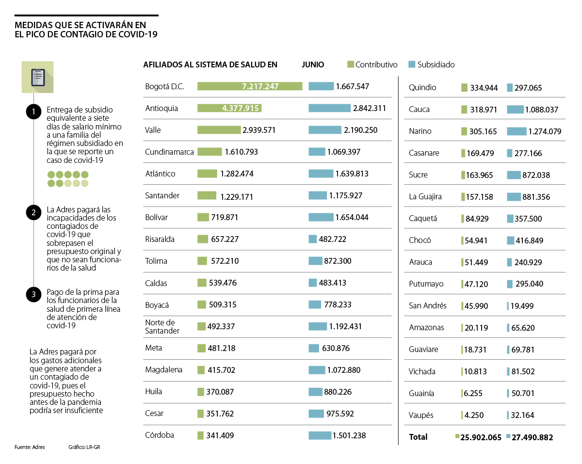 Ante el reto económico y social que ha representado atender la pandemia del covid-19 en el país, el Ministerio de Salud, junto a la Administradora de los Recursos del Sistema de Seguridad Social en Salud (Adres), ha preparado tres mecanismos que se activarán en el momento que se considere que se alcanzó el pico de contagios.