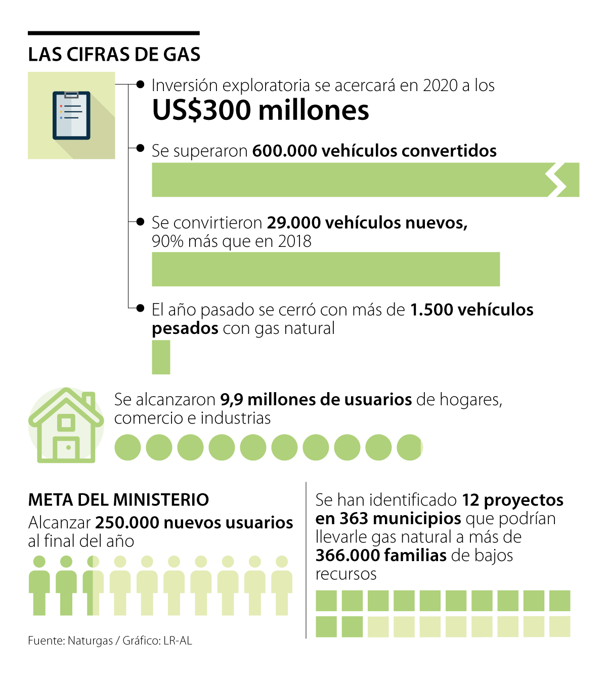 En el consumo del hogar se informó que la industria ya tiene identificados cerca de 12 proyectos en 363 municipios. De acuerdo con Naturgas, este año prevén ejecutarse esas obras, las cuales tendrán una inversión de $200.000 millones.