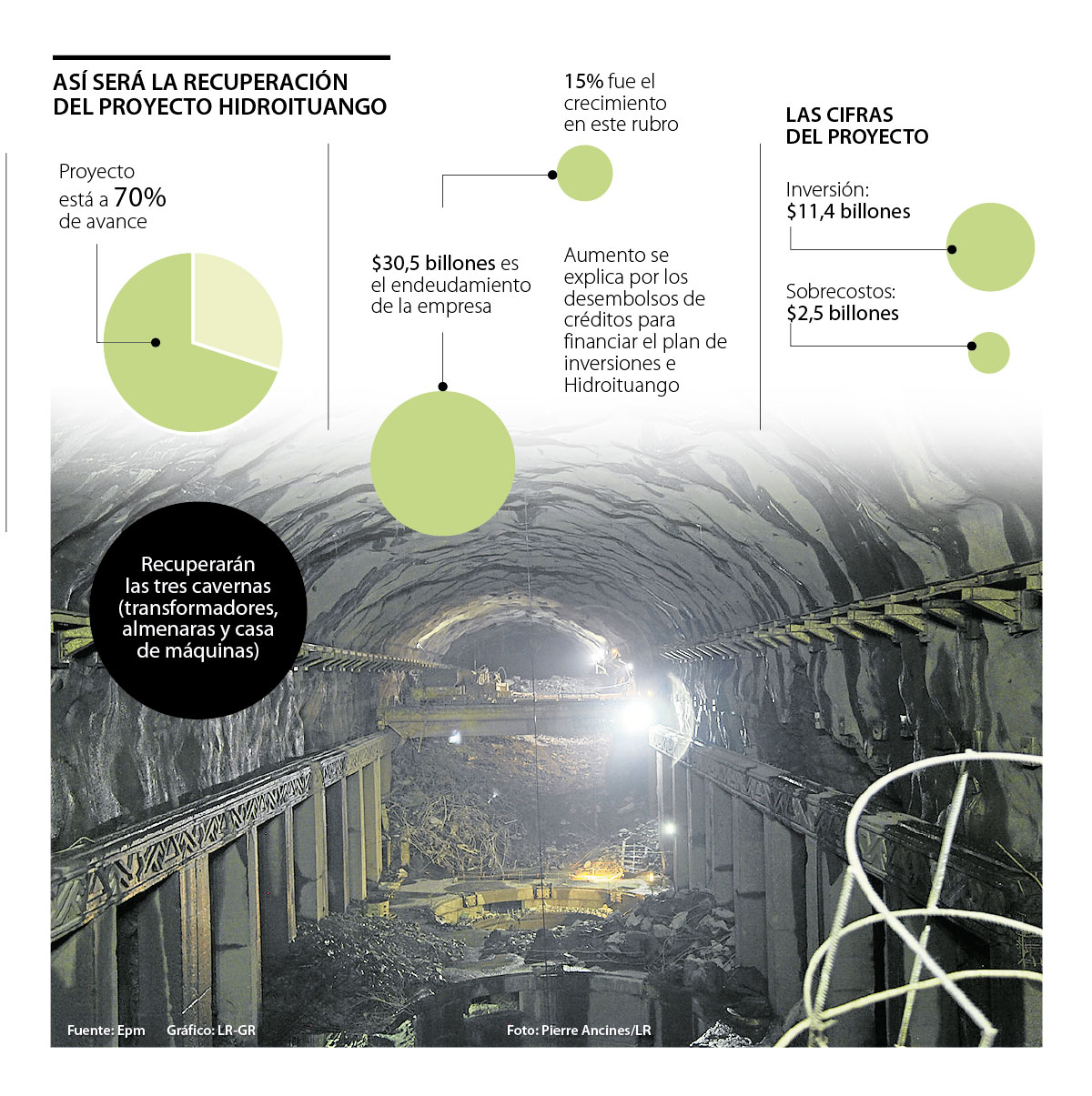 La hoja de ruta para la recuperar el corazón de la central hidroeléctrica ya está clara. Según Jhon Maya Salazar, vicepresidente de negocios de EPM, hoy la caverna que recubre la casa de máquinas está llena de material y rocas, pero totalmente estable. “Hay que hacer unas refacciones y mirar otras cosas que tenemos. Sin embargo, lo que es la bóveda la tenemos bien, y lo que son las vigas y las columnas, también”, explicó.