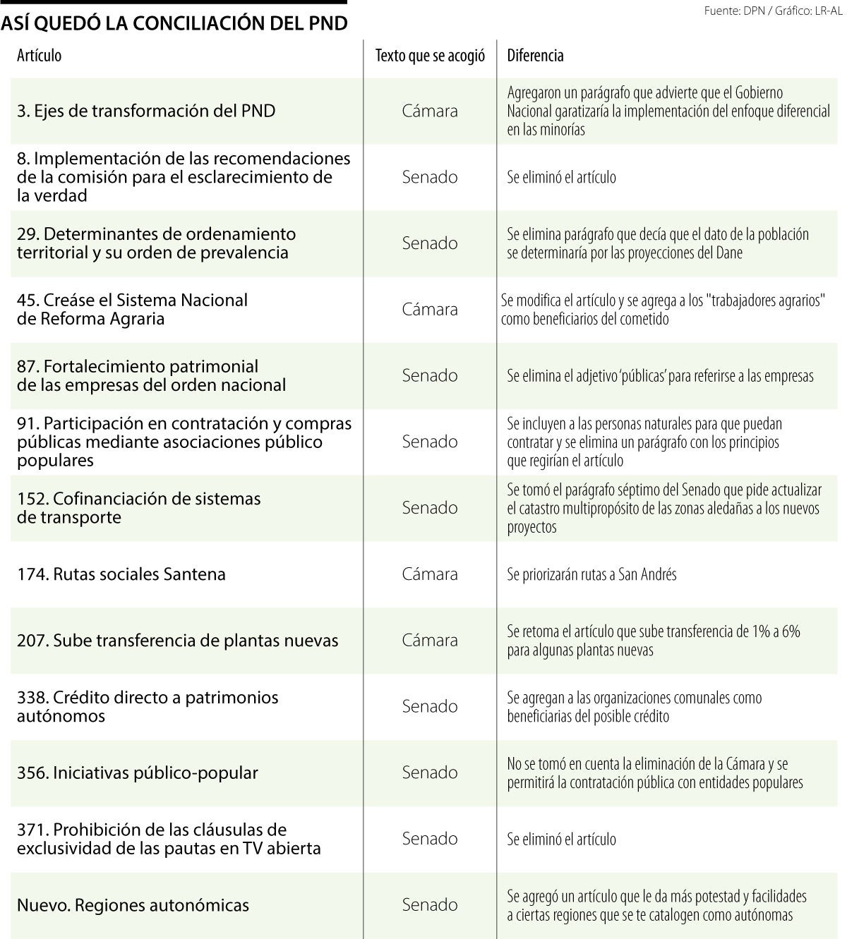 Tanto Senado como Cámara propusieron una serie de artículos nuevos para integrar al PND. Estos también se discutieron en la conciliación y se convertirán en Ley con la firma del presidente Petro.