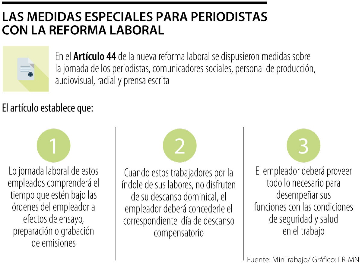 Iván Jaramillo Jassir, viceministro de Empleo y Pensiones, comentó a LR el alcance de este punto. “El artículo aplicará para todos, no solamente periodistas, sino también para quienes trabajen en el área de producción. La idea es que todo el “tiempo muerto” que trabajen por fuera de su jornada laboral sea remunerado”.
