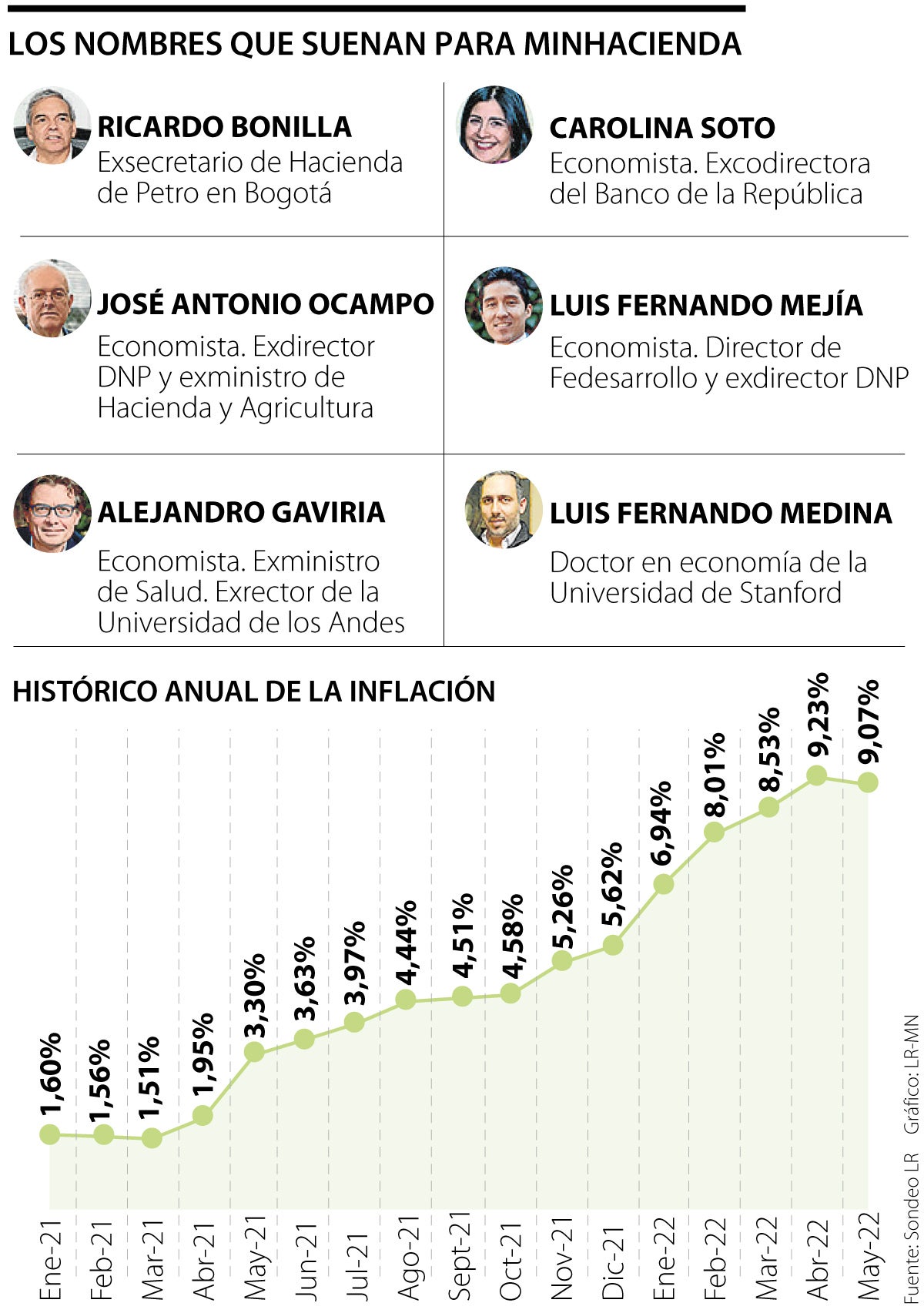 Ya en días pasados, el presidente electo había barajado algunos nombres. En una entrevista con el País de España afirmó que está acompañado por economistas de varias escuelas de pensamiento. Resaltó algunos de los nombres que lo acompañan: Alejandro Gaviria, Ricardo Bonilla y Luis Fernando Medina. Sin embargo, en el sonajero también están José Antonio Ocampo, Luis Fernando Mejía, de Fedesarrollo, y la excodirectora del Banco de la República, Carolina Soto.