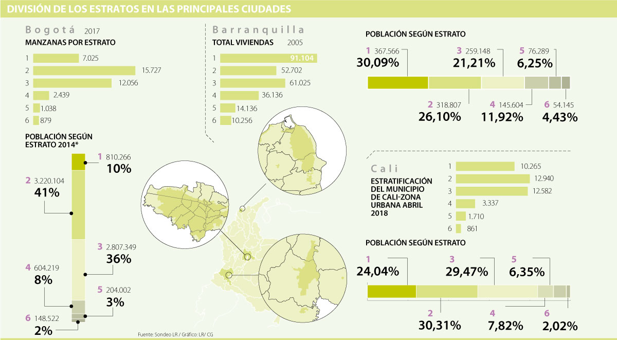 “Es difícil homogeneizar los estratos en todas las ciudades y medir cuántas personas hay en cada uno. La clasificación se da para los servicios públicos, incluso, en algunos recibos pueden llegar a venir ser diferentes. Quizá las ciudades con mayor conteo sean Bogotá y Medellín donde pocas empresas concentran los servicios”, manifestó Carlos Charry, profesor de Sociología de la Universidad del Rosario.