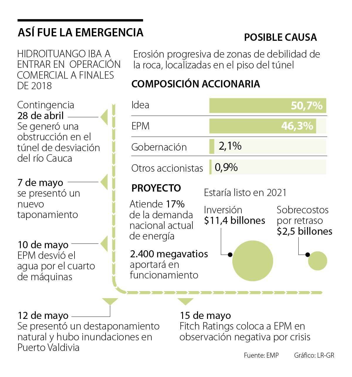 En rueda de prensa, Empresas Públicas de Medellín (EPM) hizo entrega y explicó los resultados del estudio de causa raíz de la contingencia que se presentó en el proyecto Hidroituango. En este se tuvo en cuenta un árbol con 28 hipótesis de las posibles causas de la emergencia.