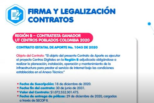 Este contrato que será entregado a ETB hace parte del proyecto de Centros Digitales que se creó para conectar a 14.745 instituciones educativas rurales con una inversión de $2,1 billones.