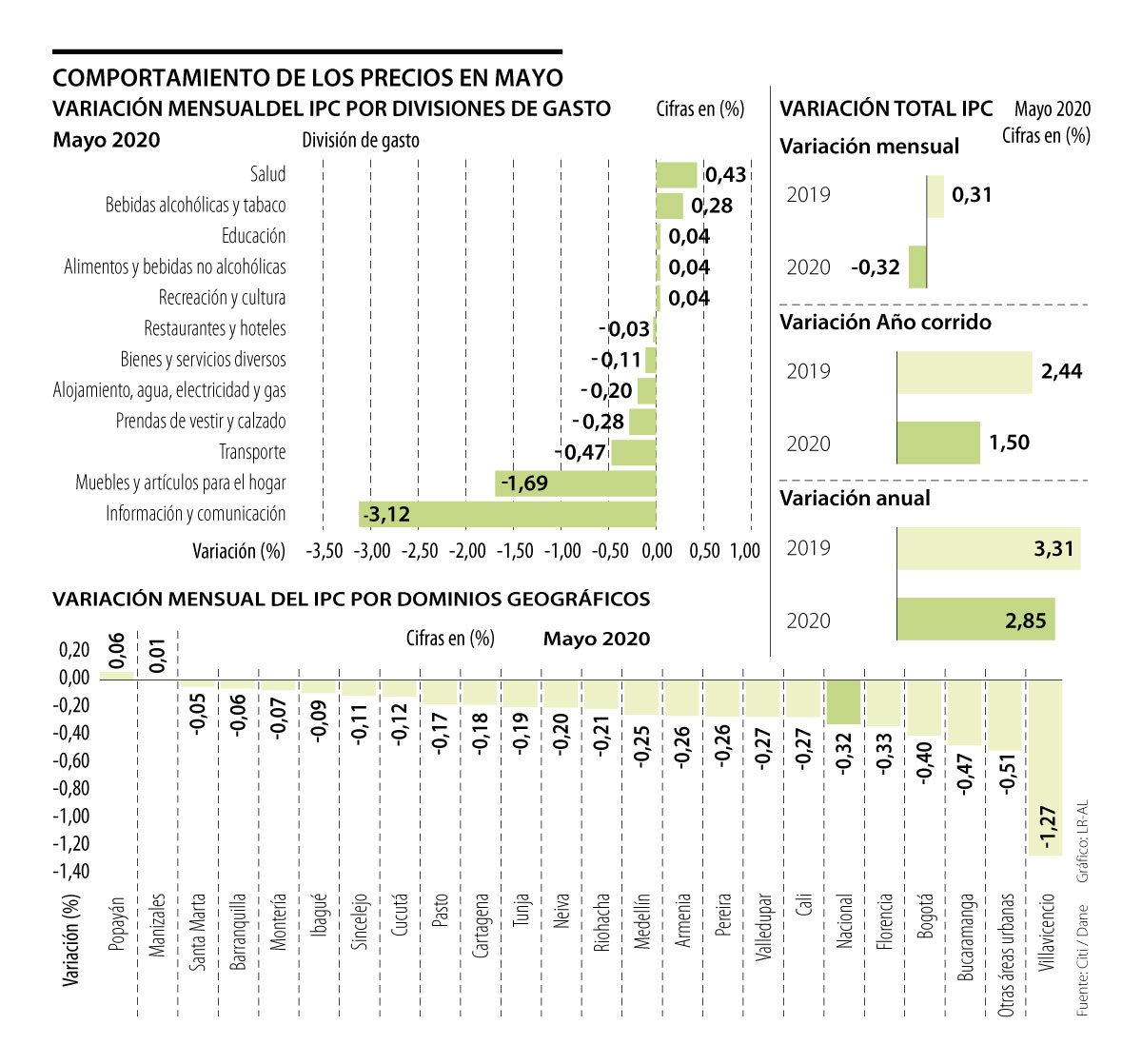 En el quinto mes del año la inflación mensual cayó a terreno negativo como consecuencia indirecta de la pandemia, pues tanto las medidas que se han tomado para contrarrestar su propagación, como para lidiar con el impacto en la economía, influyeron en el resultado.