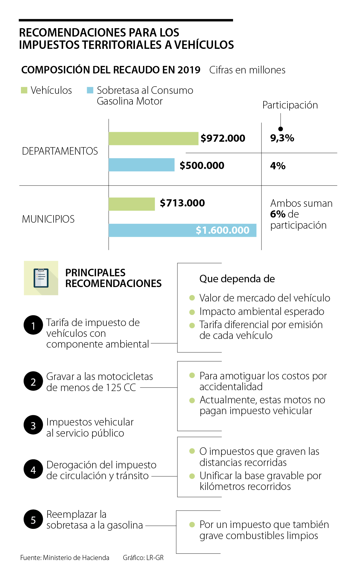 El Gobierno comenzó a recibir recomendaciones que simplifiquen y fortalezcan el sistema de impuestos. La Comisión de Expertos en el Sistema Tributario Territorial, creada en 2019 por la Ley de Crecimiento, entregó varias propuestas para subir el recaudo en municipios y departamentos, y detalló varios apartes para el segmento de vehículos y combustibles, para, a sí mismo, compensar su impacto ambiental.